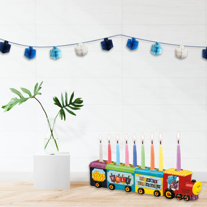 Celebrate. Decorate. Elevate! Every Chanukah presentation will be a smash hit with these unique Honeycomb Dreidel Garlands sets! The festive colors and iconic shape make this set the perfect Chanukah - themed accessory.