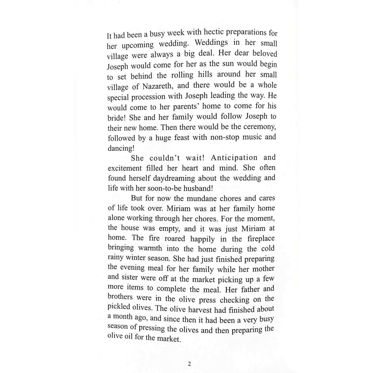This book tells the story of Miriam's everyday life and explains the dynamics of biblical times. Miriam faces challenges like her life under Roman occupation and the bustling community of Galilee. Experience the point of view of a young woman who is soon to be married and is suddenly with child before marriage. Will anyone believe young Miriam?