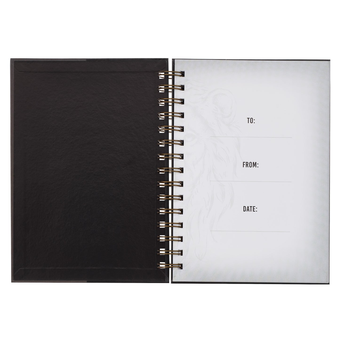 Take some time to deconstruct your day when you journal your thoughts in the Strong Large Spiral Journal. The striking lion's face on the cover will encourage you to find strength and comfort in the promises God makes in the Bible, specifically that if you put your faith in him, he will never leave you.