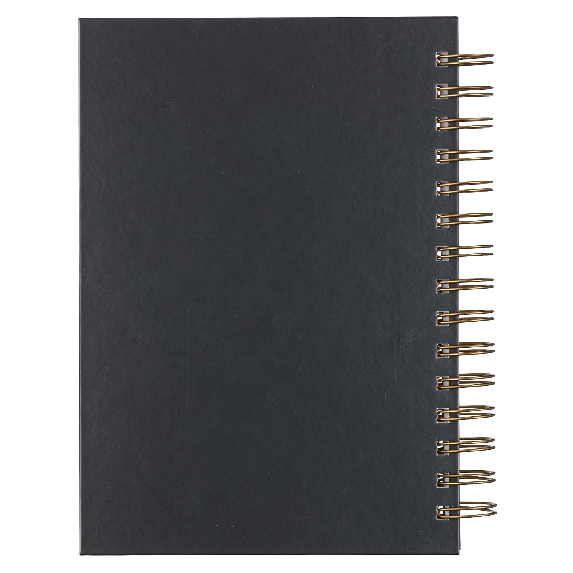 A presentation page in the front of the journal allows you to address this journal to someone special as a gift of encouragement or to mark a special occasion. The durable hardcover protects the journal's pages and prevents any bending or damage to the item. It also provides a sturdy surface for note-taking. A gold-toned wire binds the covers together. 192 lined pages are included for journaling or note-taking, each featuring a Scripture verse that can be used as a journal prompt.