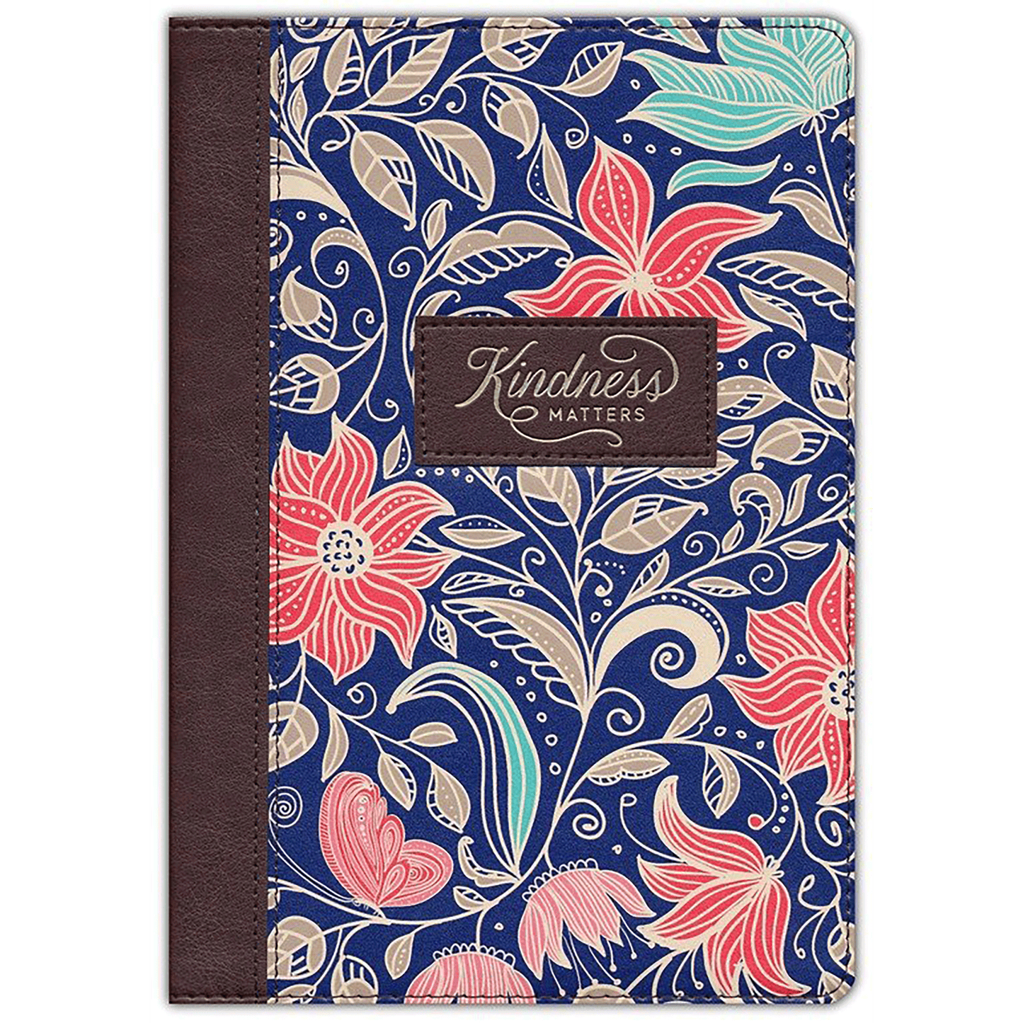 The Kindness Matters journal is crafted with a faux leather flex cover and has timeless elegance and durability. The heat-debossed cover design features the motto "Kindness Matters" with foil accents which adds a touch of sophistication to its artisan motif.