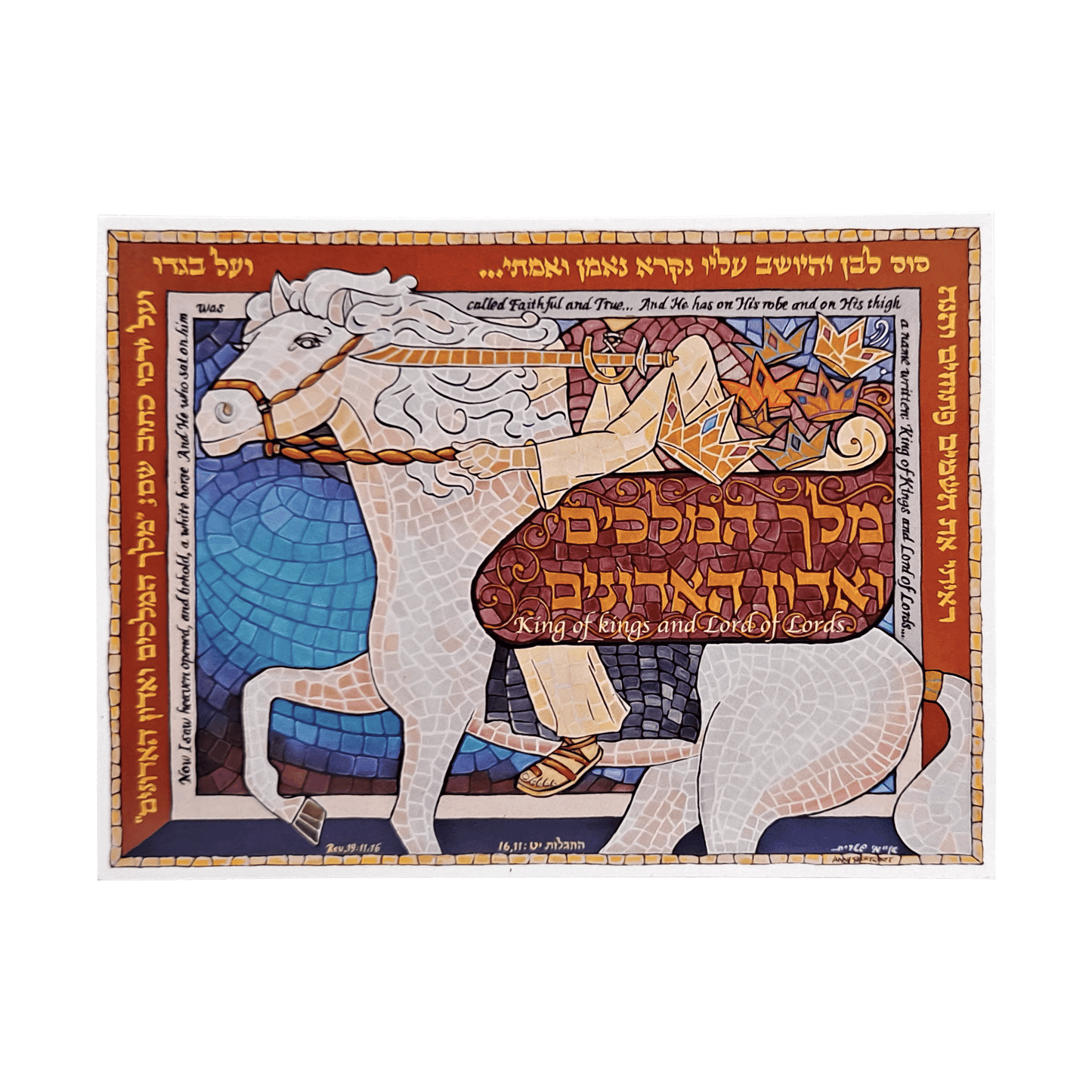 A majestic mosaic magnet by Israeli artist Amy Shetreet, titled King of Kings. This intricate design radiates beauty, portraying the title King of Kings with vibrant colors and mosaic patterns. Combining Amy Shetreet’s signature artistry with profound spiritual significance, it serves as a powerful reminder.