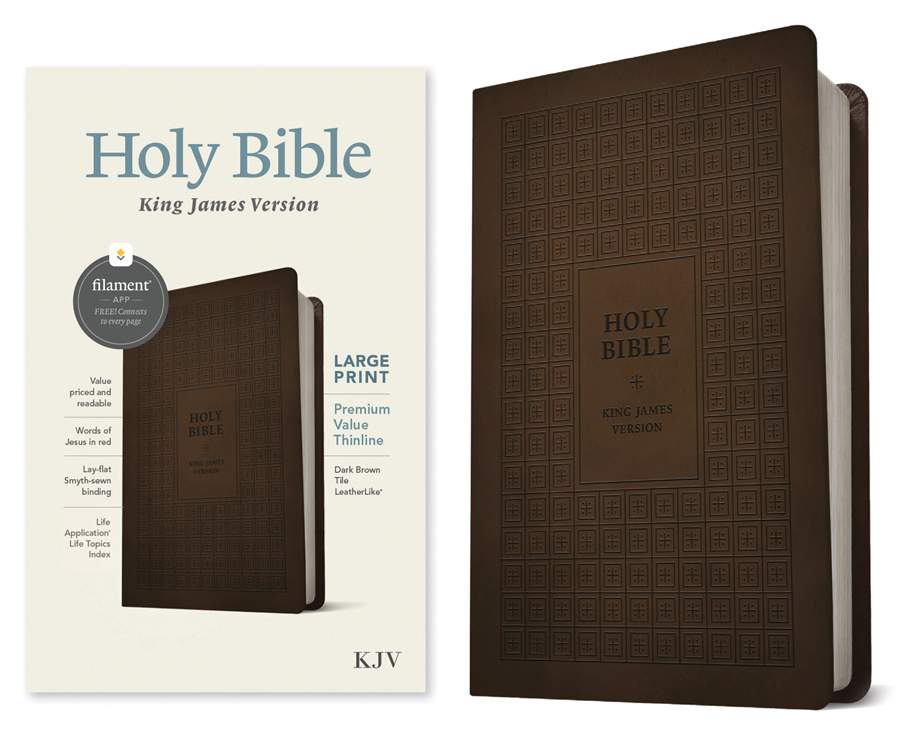 KJV Large Print Premium Value Thinline Bible, Filament Enabled, LeatherLike, Dark Brown Tile