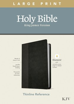 The new Tyndale classic KJV Large Print Thinline Reference Bible, Filament-Enabled Edition has readable text, an attractive layout, and cross-references in a thin, easy-to-carry size. And while it has the same low price as basic text-only Bibles, the KJV Large Print Thinline Reference offers much more. It not only features a bold new design and the revered King James Version (KJV) but also includes the groundbreaking Filament Bible app. This app enables you to use your mobile phone or tablet to connect every page to a vast array of related content, including study notes, devotionals, interactive maps, informative videos, and worship music.
