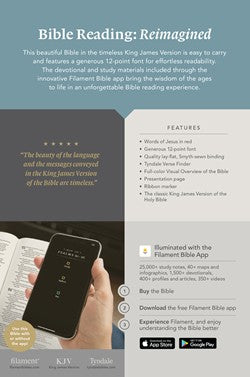 And while it has the same low price as basic text-only Bibles, this Bible in the trusted and revered King James Version (KJV) also includes the groundbreaking Filament Bible app.