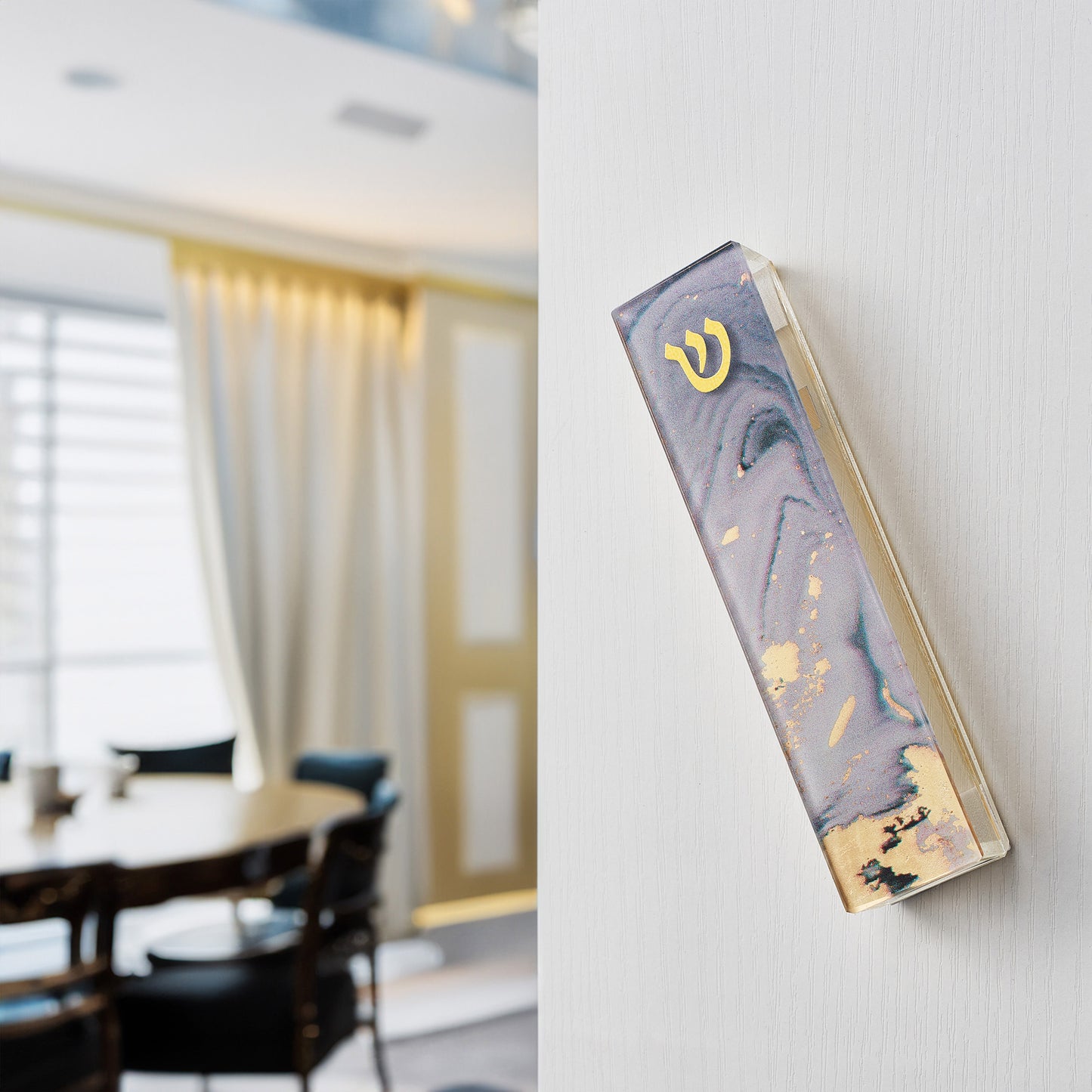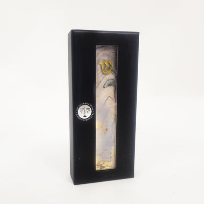 Grace your entryway with this luxurious glass Mezuzah case! Featuring a rich "Lilac Marble design and gold accents, this artistic designer Mezuzah case exudes a sense of luxury and that is both graceful and inspirational.