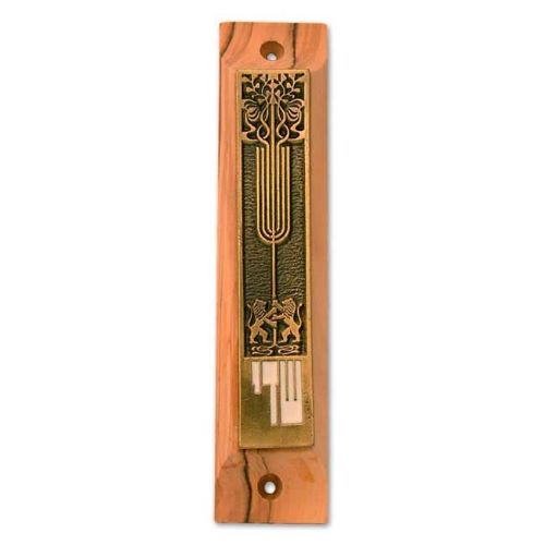 Lion of Judah Olive Wood Mezuzah - ( 3 Tones)