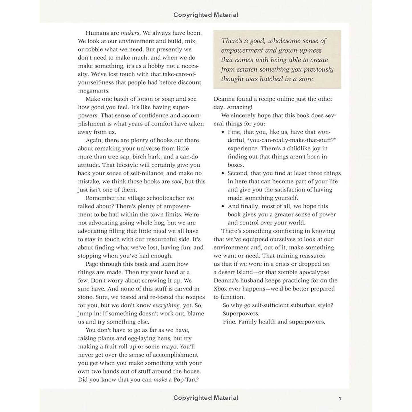 The easy-to-follow advice in this book will show you everything you need to know to enjoy an abundant, independent life on food and products grown in your own backyard. You may feel like you have superpowers the first time you prepare a meal using only ingredients you grew in your garden. And is there anything you can't do after you lather up with a bar of soap that you made in your own home? This book is full of recipes and tips that will help you discover the joy of self-sufficiency. Don't worry; suburban gardening doesn't mean you have to rip up your yard, or risk being ostracized by neighbors or your municipality or homeowners' association.