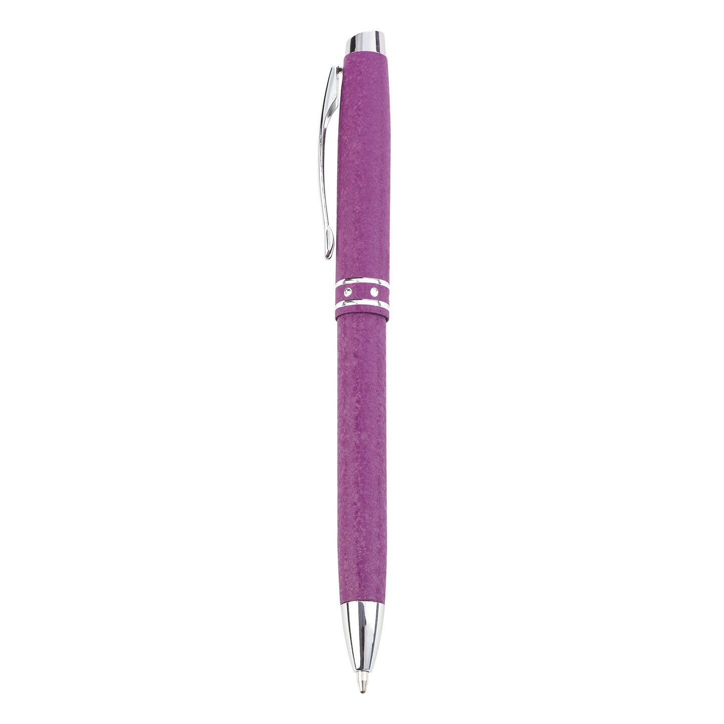 The Joshua 1:9 Purple Pen is a retractable black ink pen and includes a matching purple and silver carrying case that bears the words “Strong & Courageous” in a bold silver font. The purple and silver carrying case is convenient to remove, and she’ll read the Joshua 1:9 verse reference on the Christian pen, which is displayed in silver on a sparkly, bright purple design.