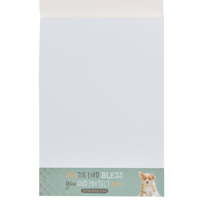 The May the LORD Bless You Green Puppy Notepad is more than just a notepad—it's a beautiful blessing for your day and a useful tool to keep your life organized as you note important details and lists on its pages.