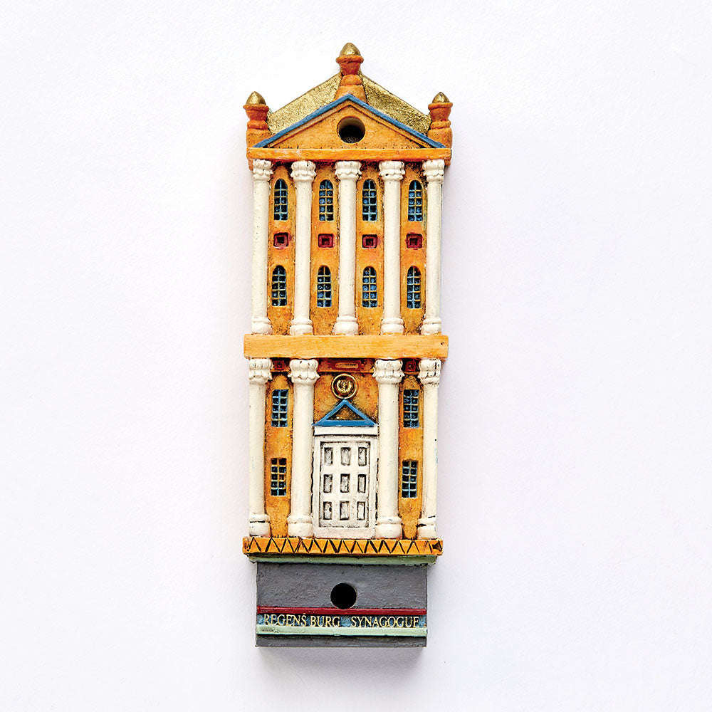 With Intricate Detailing, This Cast Resin Mezuzah Depicts The Facade Of The Regensburg Synagogue In Germany And Measures 3/4" X 4 1/2". This Mezuzah Ca Be Hung Inside Or Outdoors With The Included Hardware.