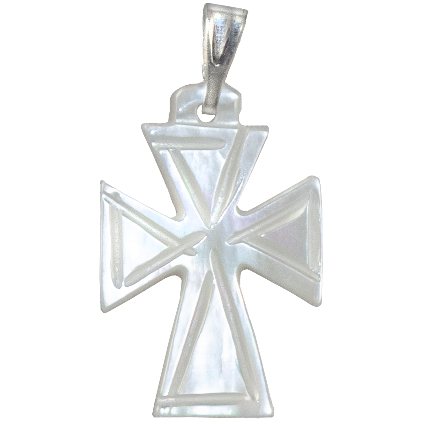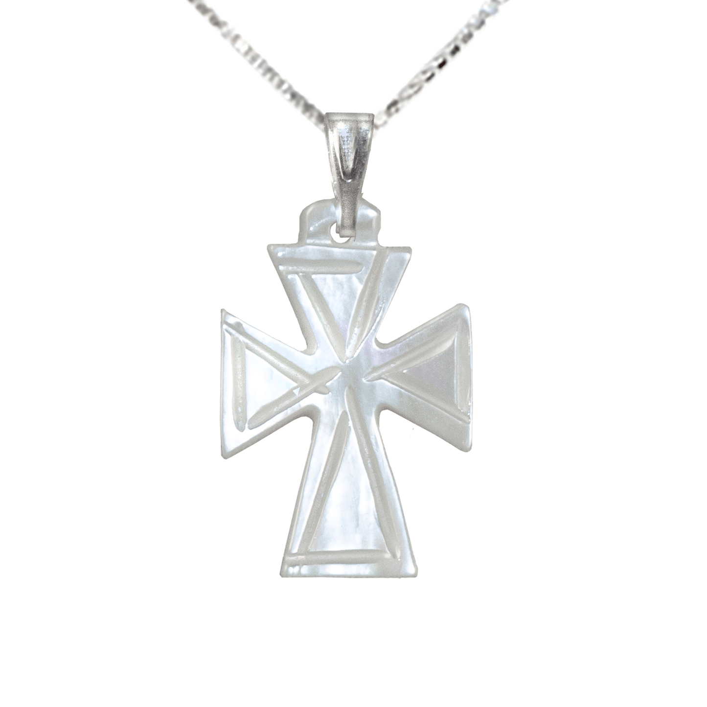 This delicate Mother of Pearl Pendant is the perfect way to display your faith or just add an elegant touch to any outfit. It features a silver clasp on top of the pendant allowing you the option to choose your own chain.