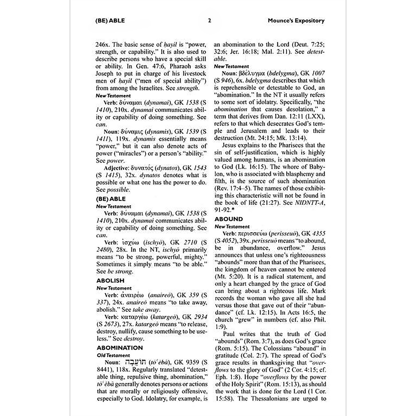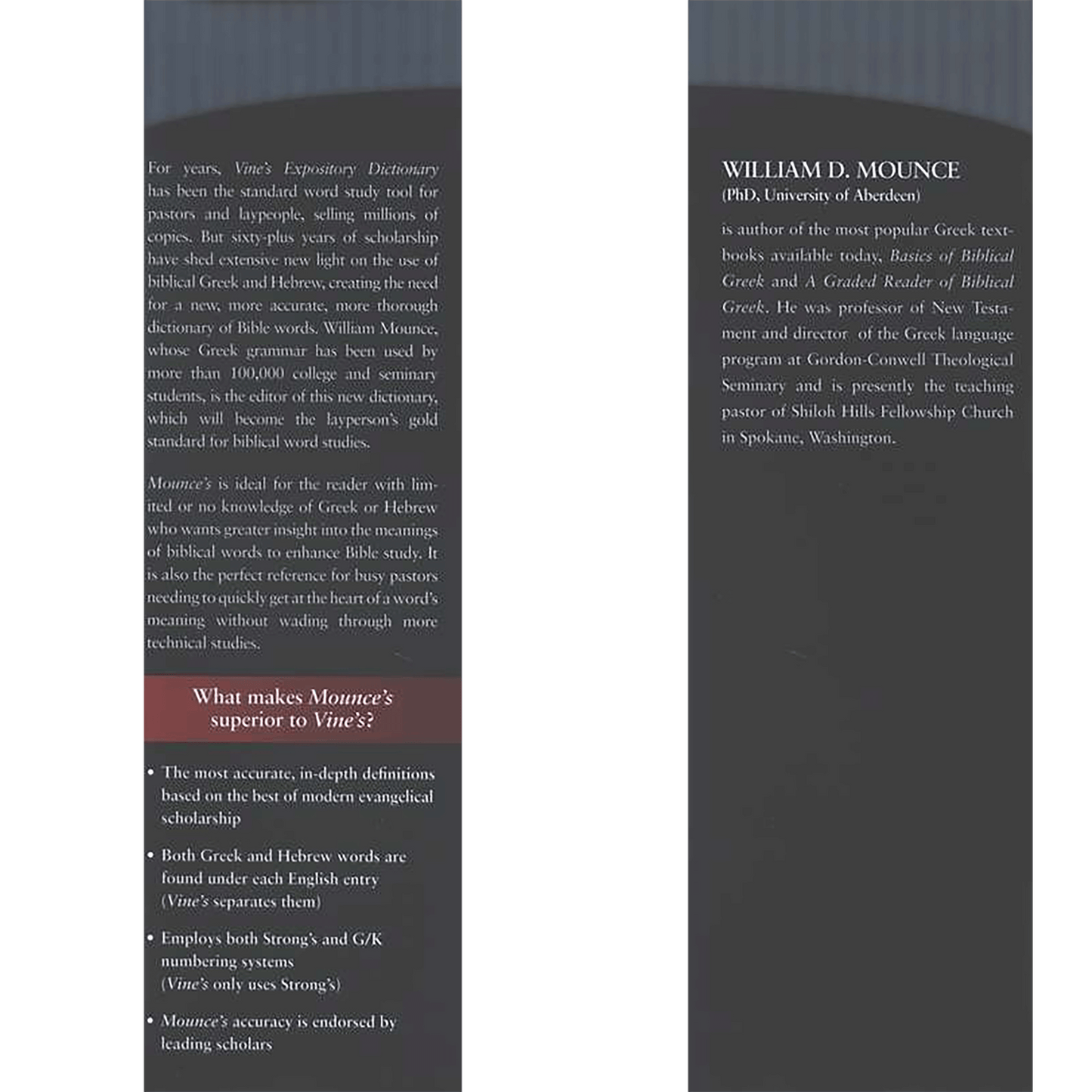 Mounce's dictionary, edited by William Mounce, renowned for his Greek grammar used by over 100,000 college and seminary students, is particularly suitable for readers who have limited or no knowledge of Greek or Hebrew but seek deeper insights into the meanings of biblical words to enhance their Bible study. It is also a valuable reference tool for busy pastors who need quick access to the essence of a word's meaning without delving into more technical studies. With its user-friendly approach, Mounce's dictionary is set to become the definitive resource for laypersons in their exploration of biblical word meanings.