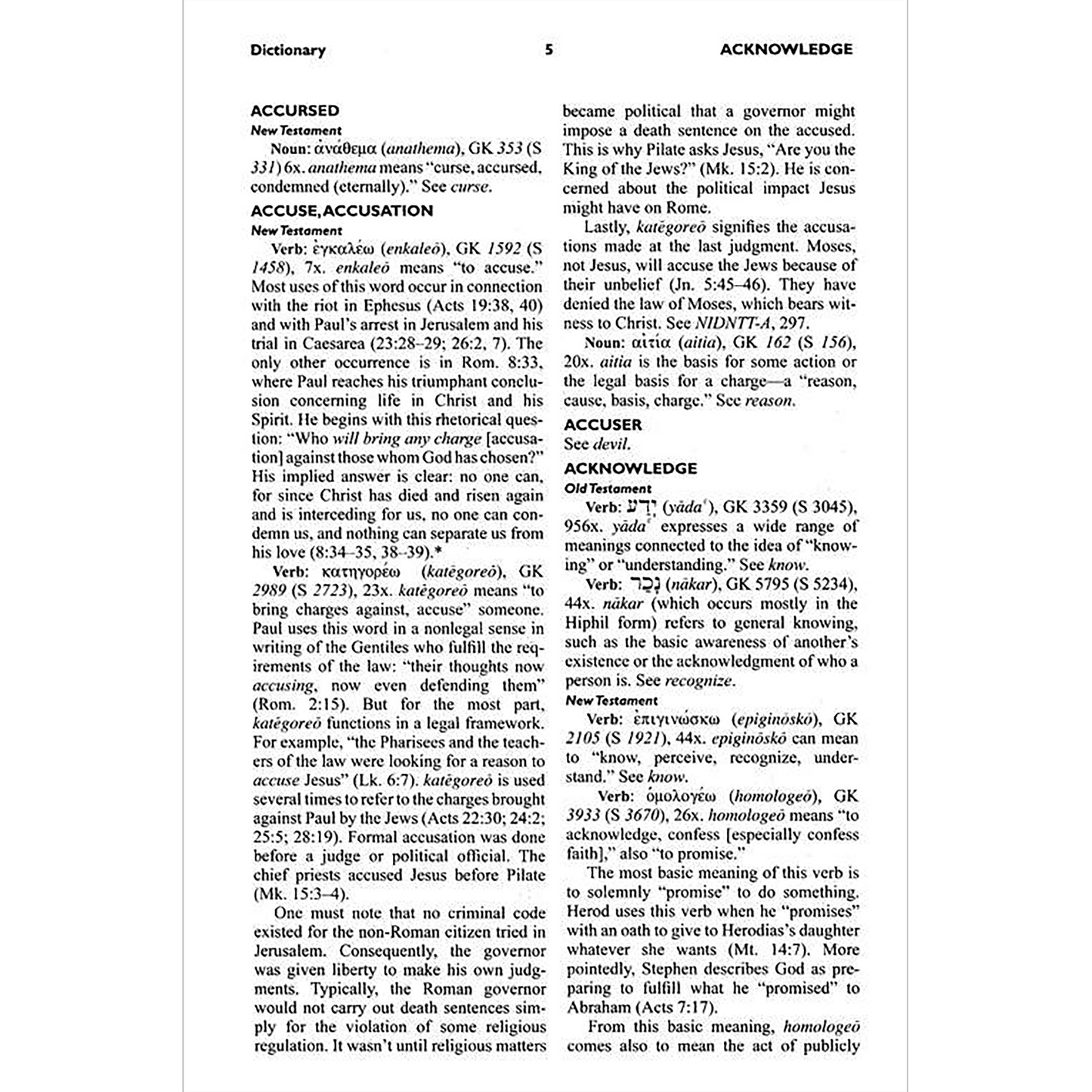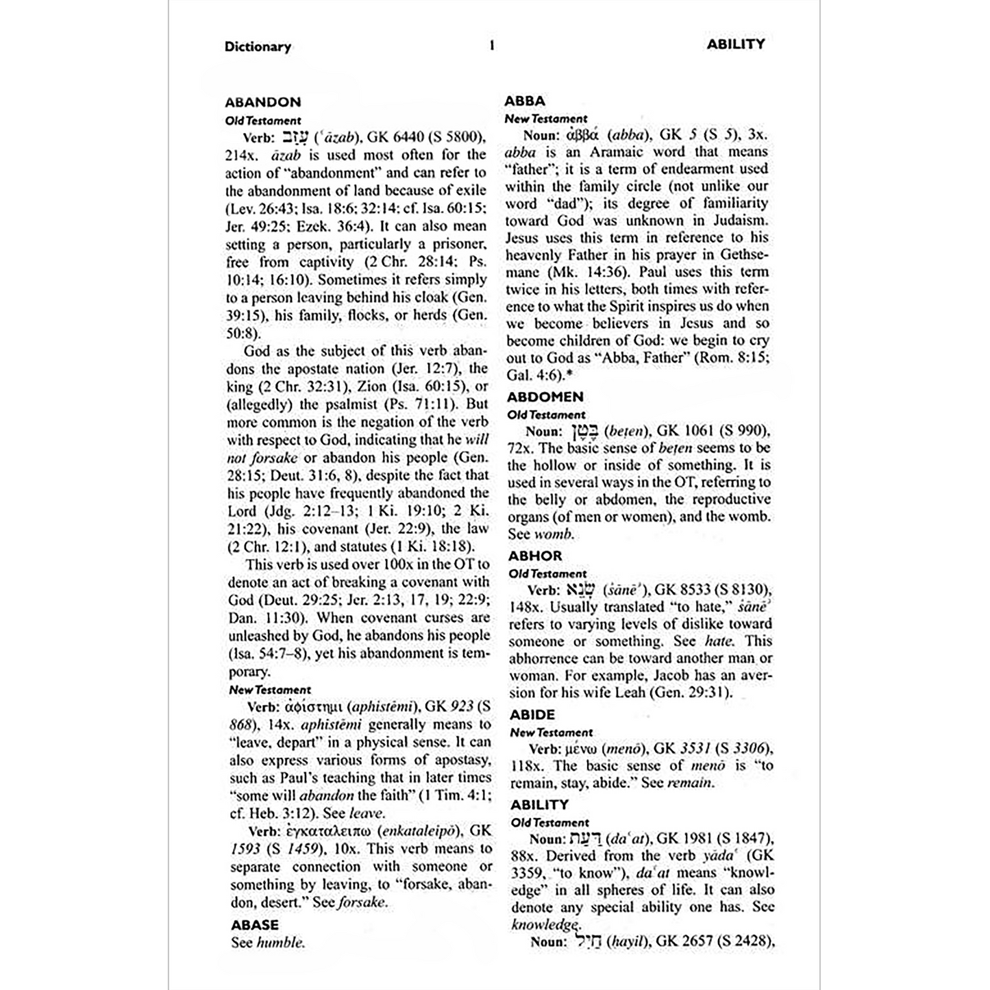 - each English entry discusses both Old Testament (Hebrew) and New Testament (Greek) words (as applicable)