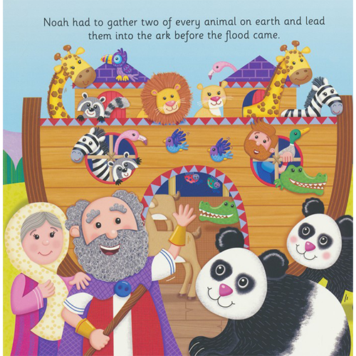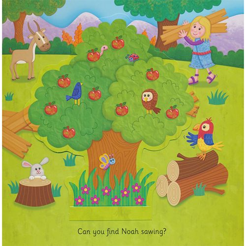 Can you find the tigers? What about the rainbow? Little ones will love lifting the flaps and discovering what's hiding underneath! Cheerful, vibrant artwork and sturdy flaps make this interactive version of Noah's story perfect for a little one ages 3-5.