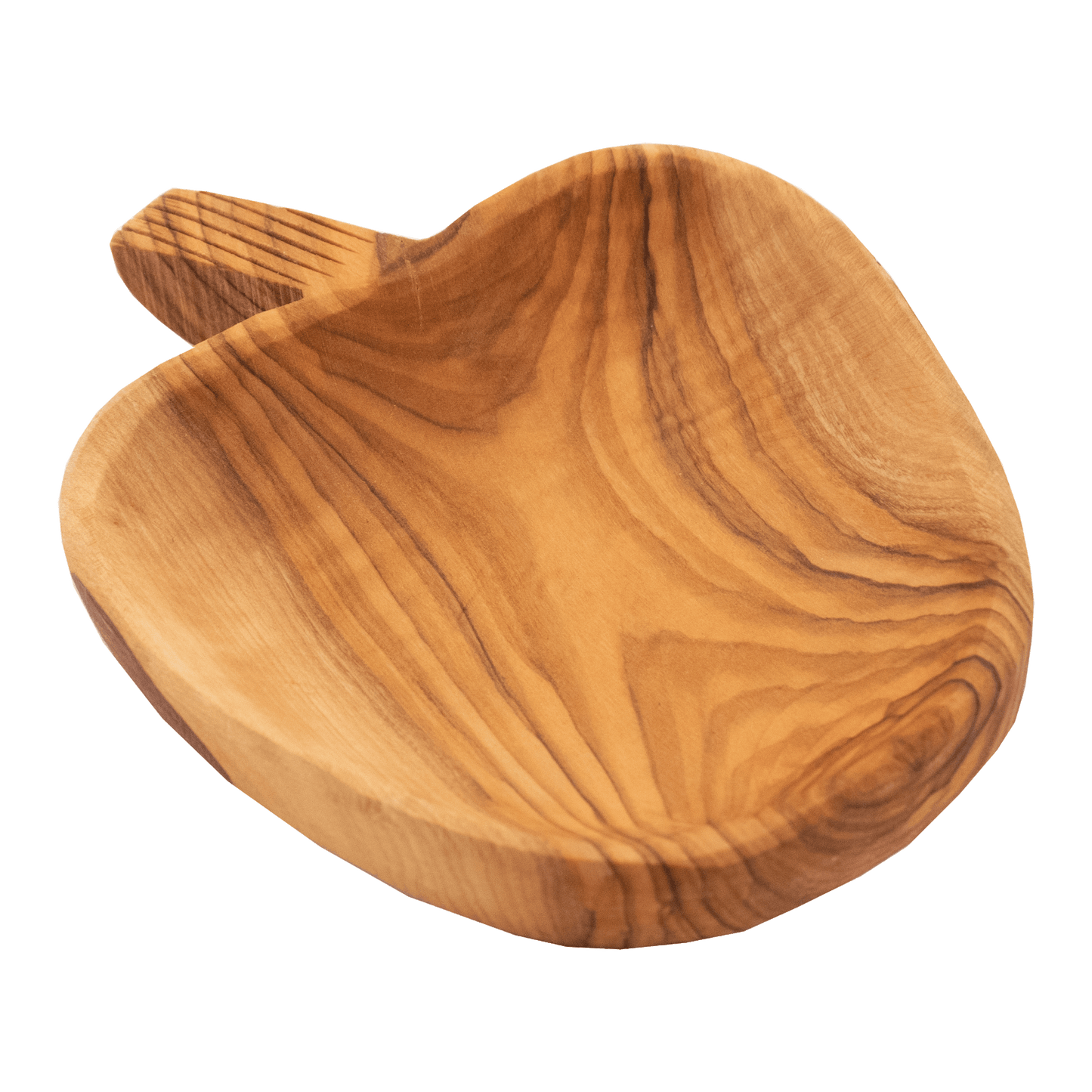 The olive wood dish is shaped like an apple and is a delightful and versatile piece. Its unique design adds a touch of whimsy and can certainly make serving or displaying small items more enjoyable. The natural beauty of olive wood also lends a rustic charm to the dish.