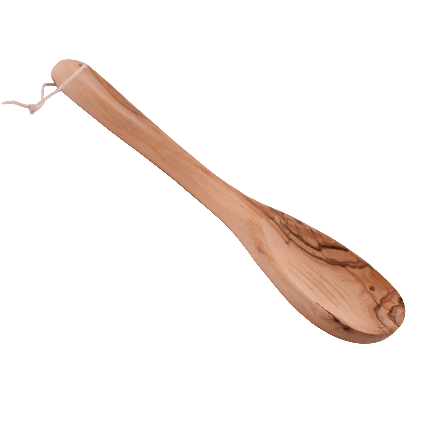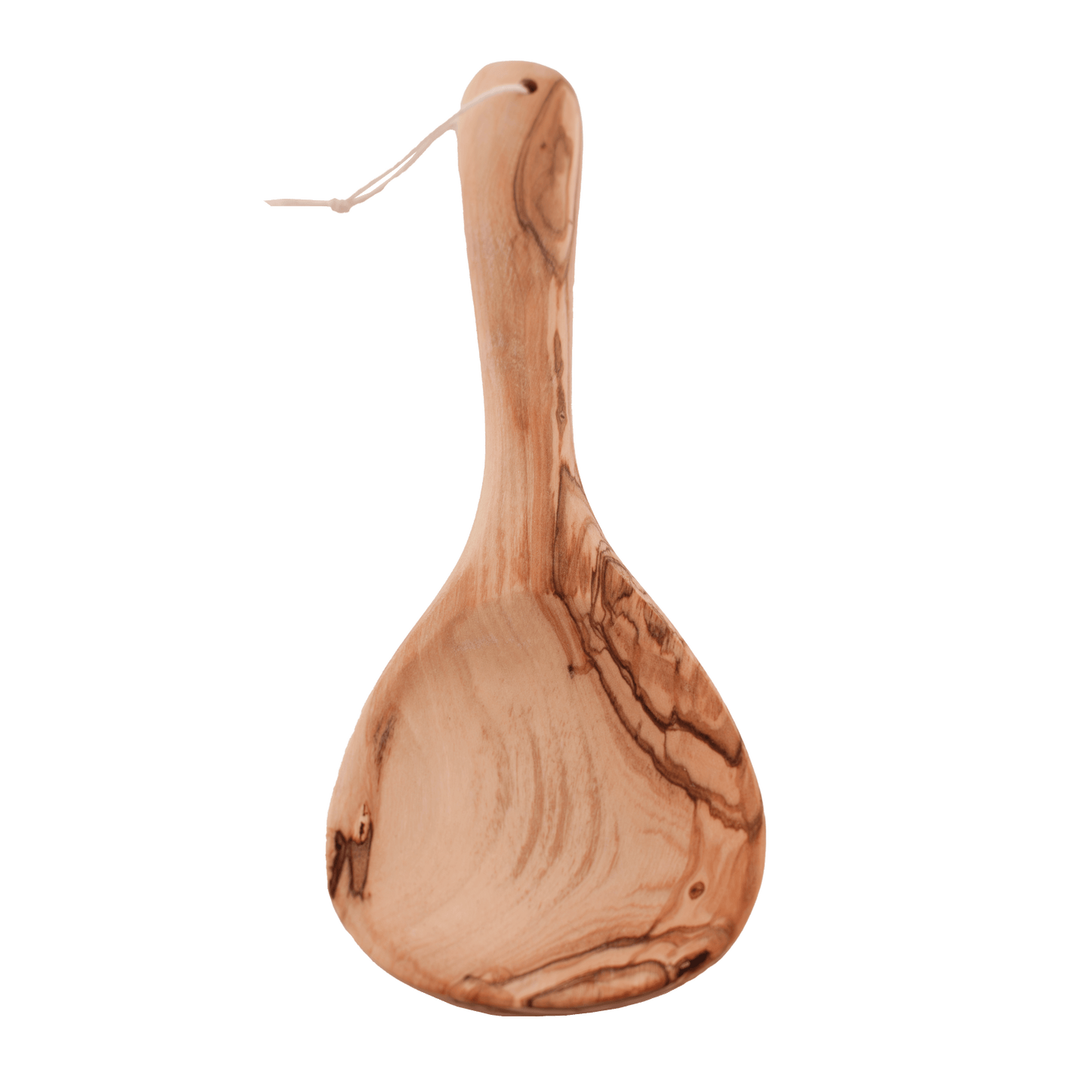 This handcrafted olive wood rice spoon from Israel is a beautiful and functional kitchen tool. Made from rich, natural olive wood, the spoon showcases the unique grain patterns and warm tones that make each piece one-of-a-kind. Smooth and sturdy, this spoon is perfect for serving rice or other dishes, while adding a touch of rustic elegance to your kitchen.