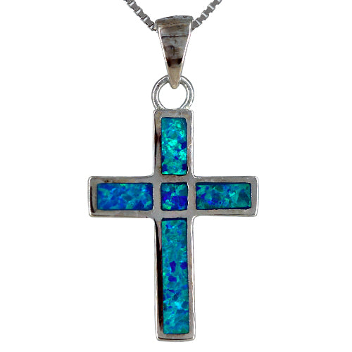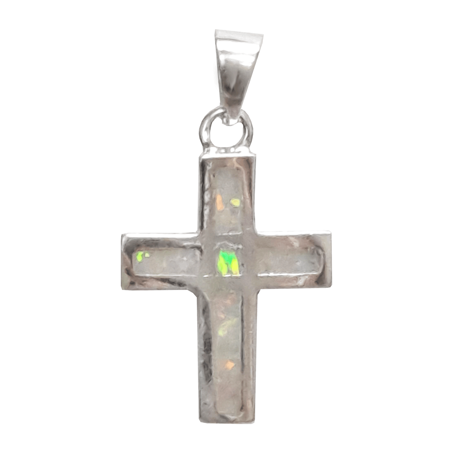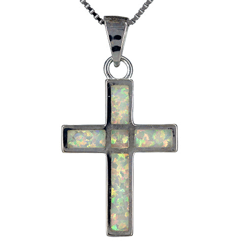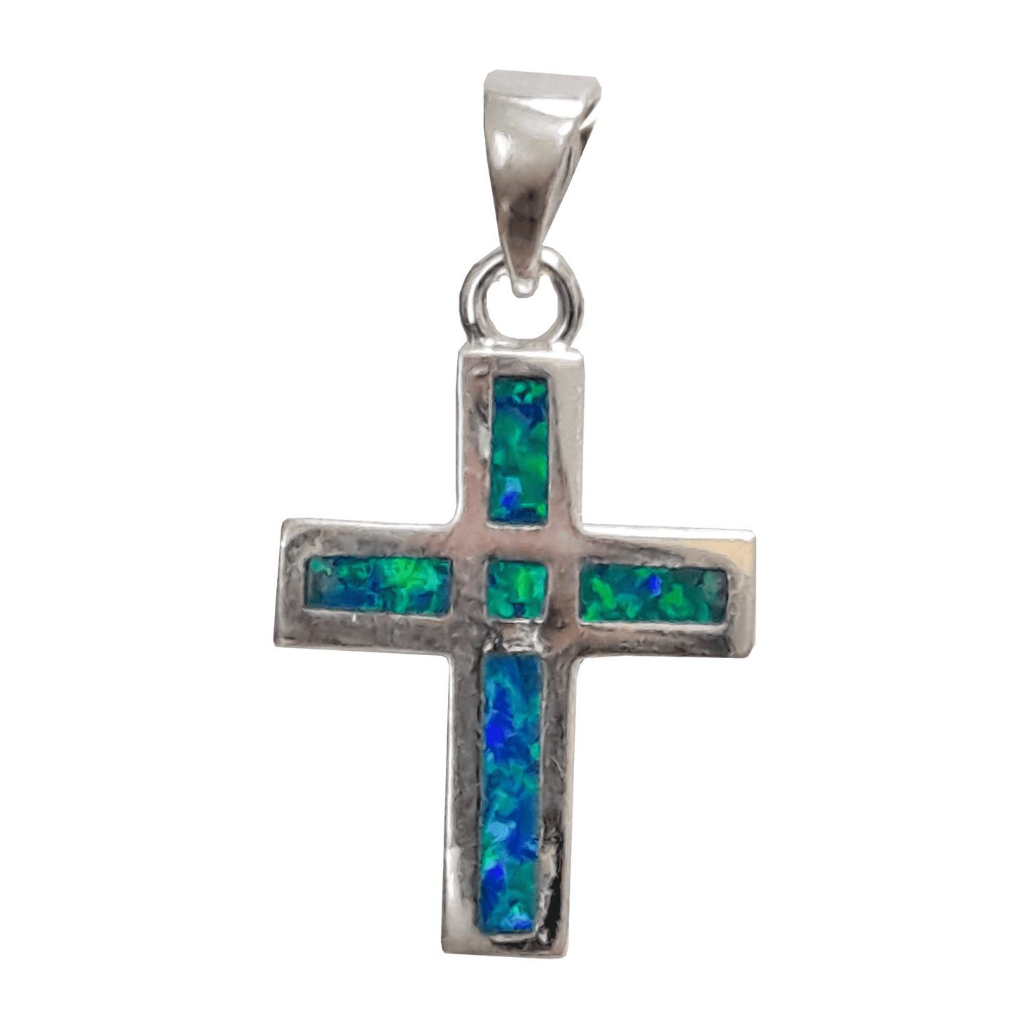 925 Silver Cross Pendant with Synthetic Opal inlay. Faith and fashion merge to create a pendant striking in its simplicity and beautiful in its meaning.