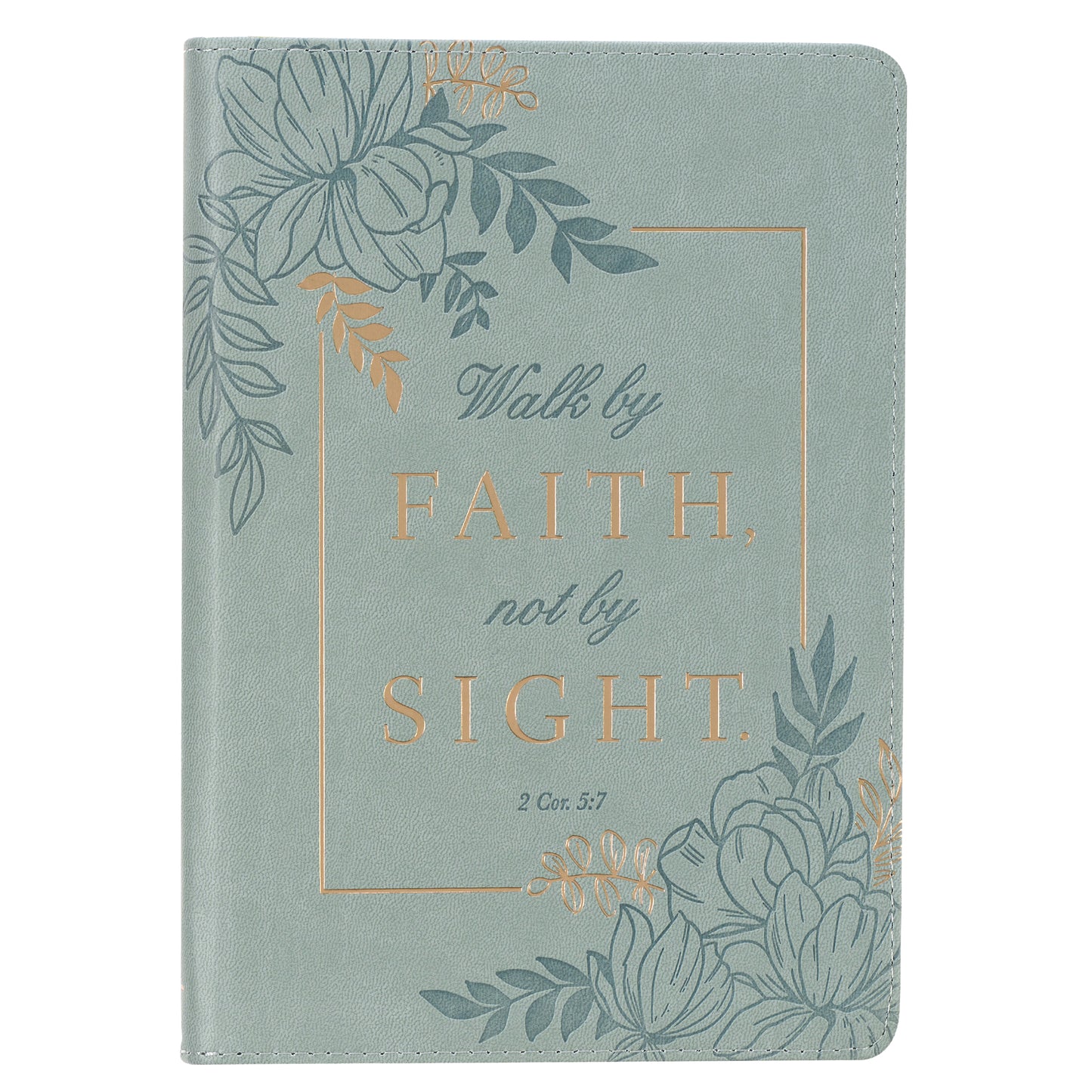 The comforting words of the Walk By Faith Teal Floral Faux Leather Classic Journal with Zippered Closure will keep your mind focused on the ultimate goal: to spend eternity with the LORD. Use the journal to remind yourself of your purpose in this life and beyond.