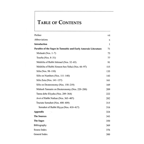 This innovative work provides the reader with a complete anthology of the parables which appear in the literature of the Tannaim and the earliest Amoraim. Parables, short stories with moral insight and a clear aim, are among the finest literary creations we possess from antiquity. Indeed, the parable served as an important tool for the sage who felt it important to instruct the public about current life or to present solutions for problems in the interpretation of the Bible.
