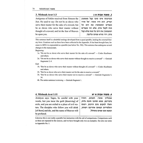 This is the first publication of a complete anthology of the parables of the Tannaim. The parables are explained literally—their social, cultural, linguistic, and historical background—to allow them to stand on their literary merits.