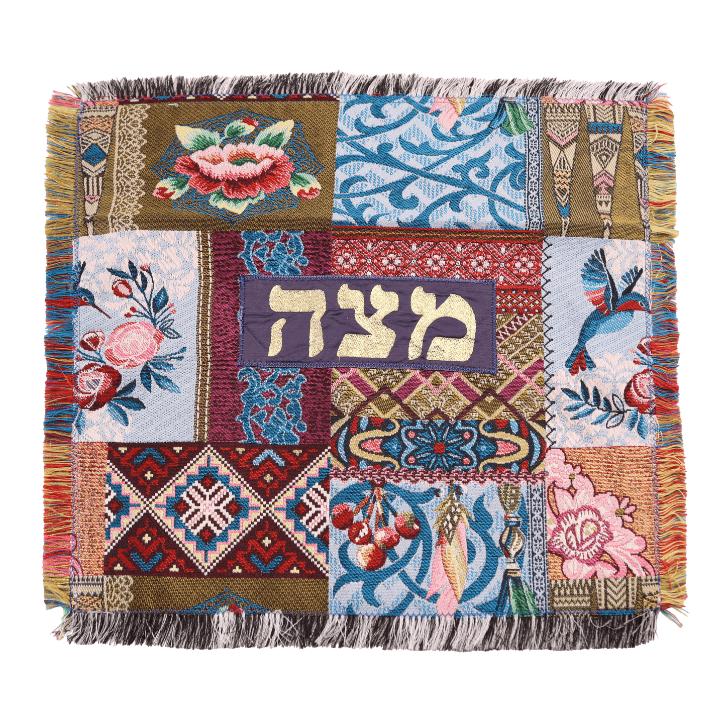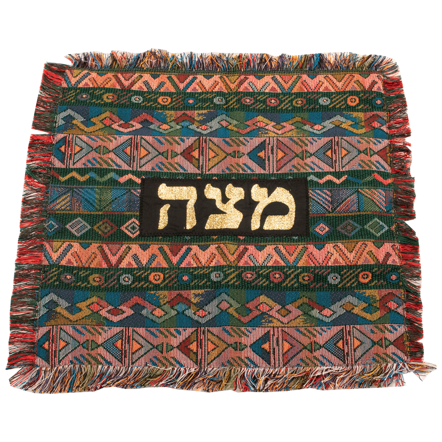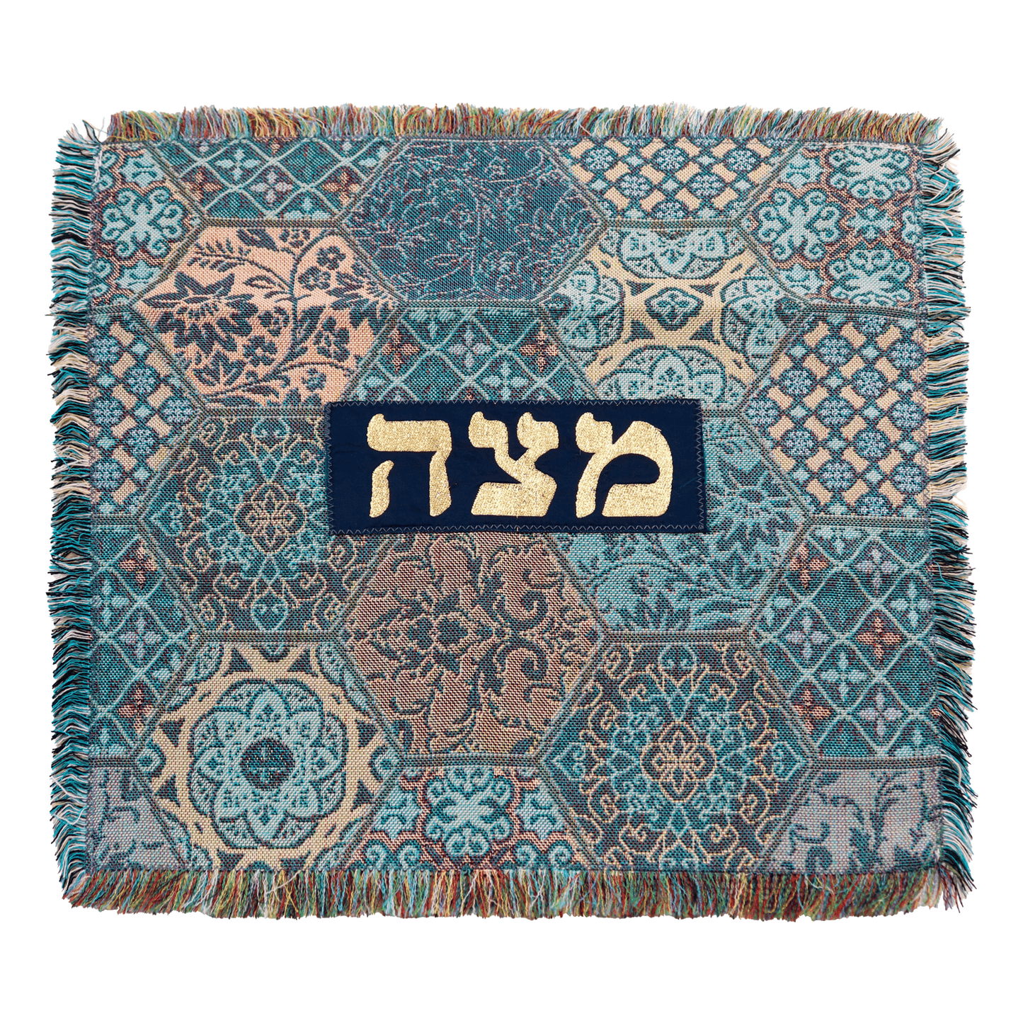 Elevate your Passover celebrations with the exquisite Matzah Cover, a stunning piece that seamlessly blends tradition with artistry. Hand-woven with care, this cover is available in a variety of patterns, allowing you to select the one that resonates with your personal style. Each cover features the Hebrew word "Matzah" (מַצָּה) elegantly crafted in gold applique, adding a touch of sophistication and reverence to your Seder table.