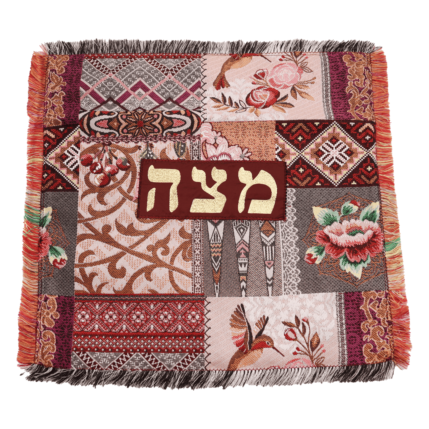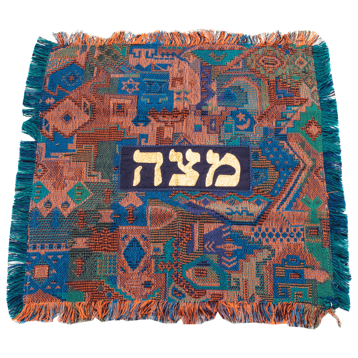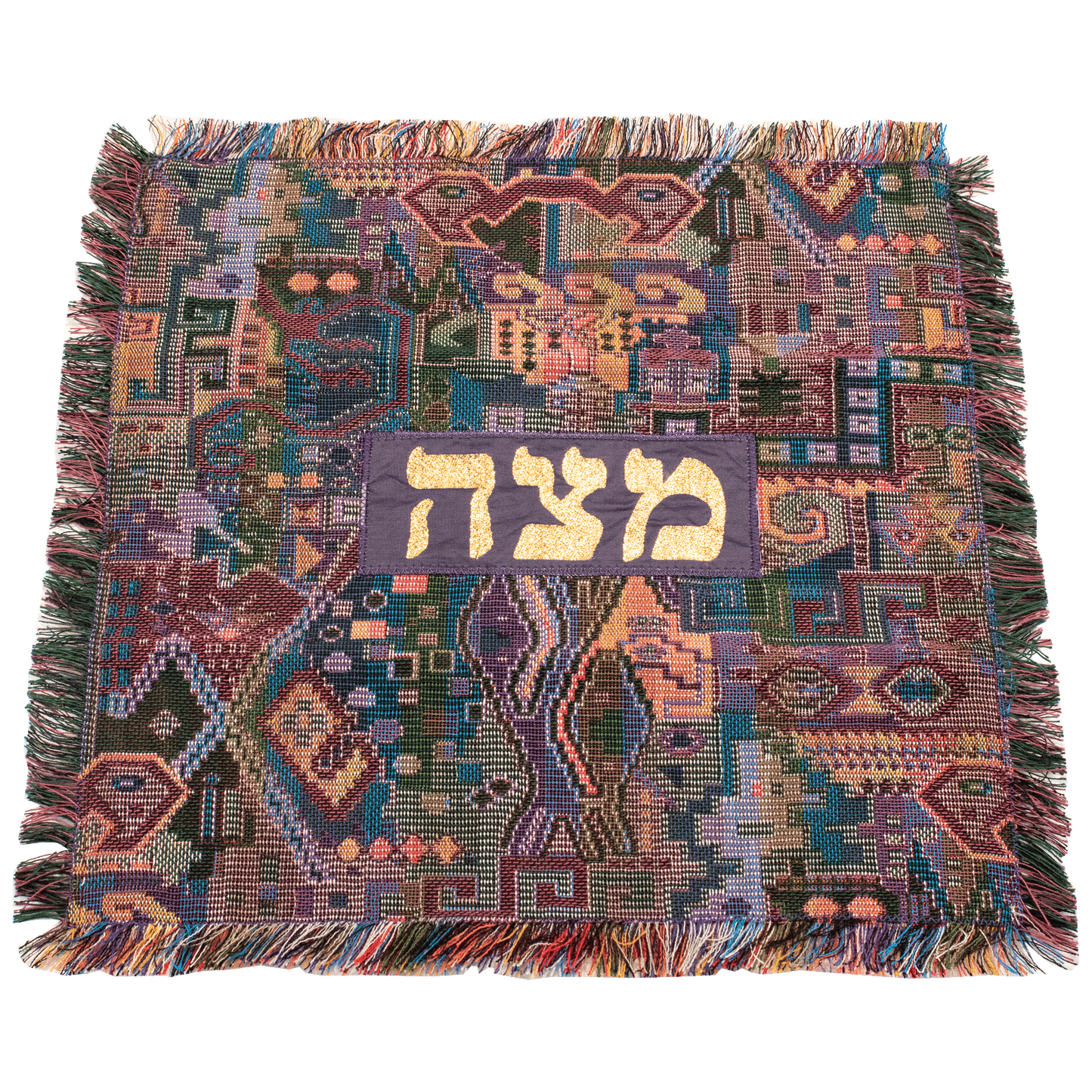 Elevate your Passover celebrations with the exquisite Matzah Cover, a stunning piece that seamlessly blends tradition with artistry. Hand-woven with care, this cover is available in a variety of patterns, allowing you to select the one that resonates with your personal style. Each cover features the Hebrew word "Matzah" (מַצָּה) elegantly crafted in gold applique, adding a touch of sophistication and reverence to your Seder table.