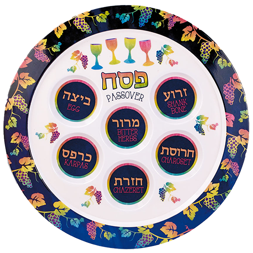 Adorn your Passover table with this elegant Seder plate! Vivid colors and a grape vine design printed on durable melamine to ensure many years of good use!