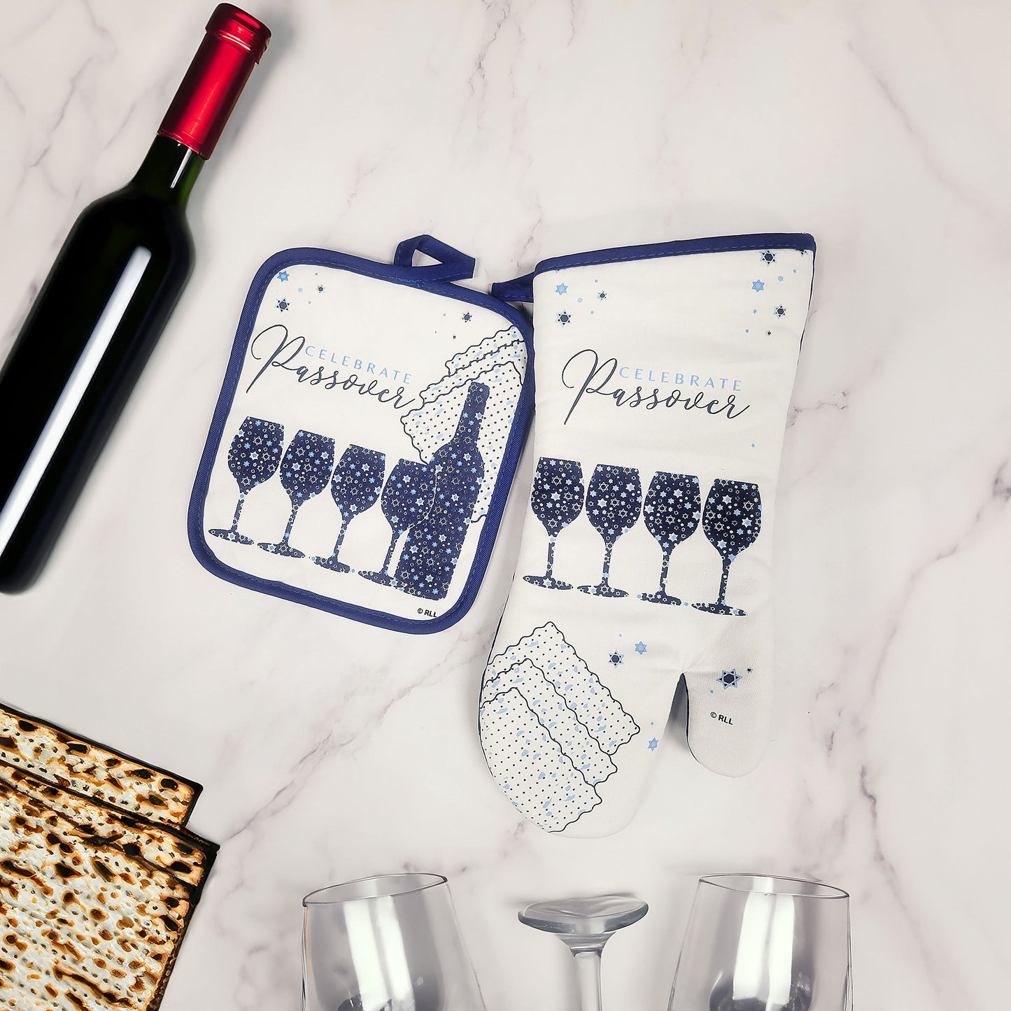 When it gets hot in the Passover kitchen, this Oven Mitt & Pot Holder set is the perfect solution to keep it cool to the touch! Featuring iconic artwork depicting the primary Passover ceremonial items, every kitchen will be transformed into a themed hub of holiday celebration. Makes a great gift!
