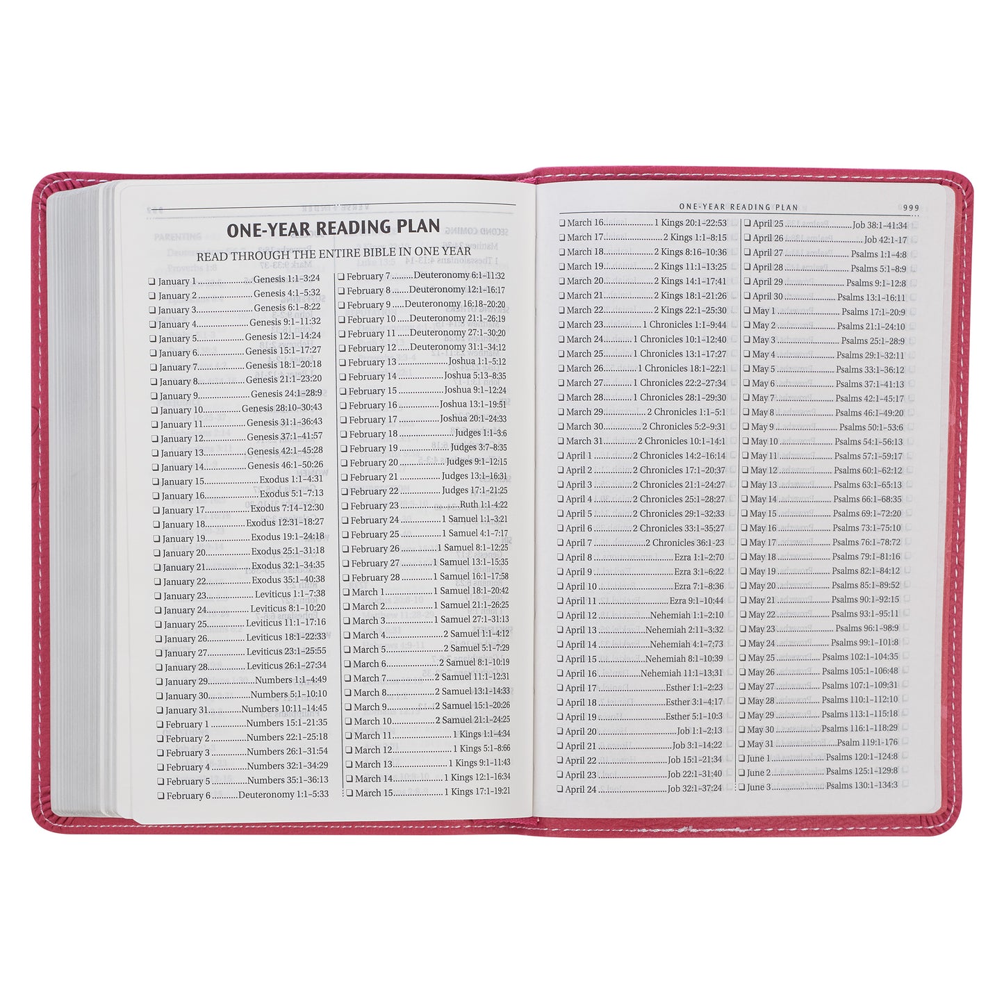 The pretty pink of the Pink Faux Leather Compact King James Version Bible will delight a niece or daughter and make her proud to be the recipient of such a unique Bible.