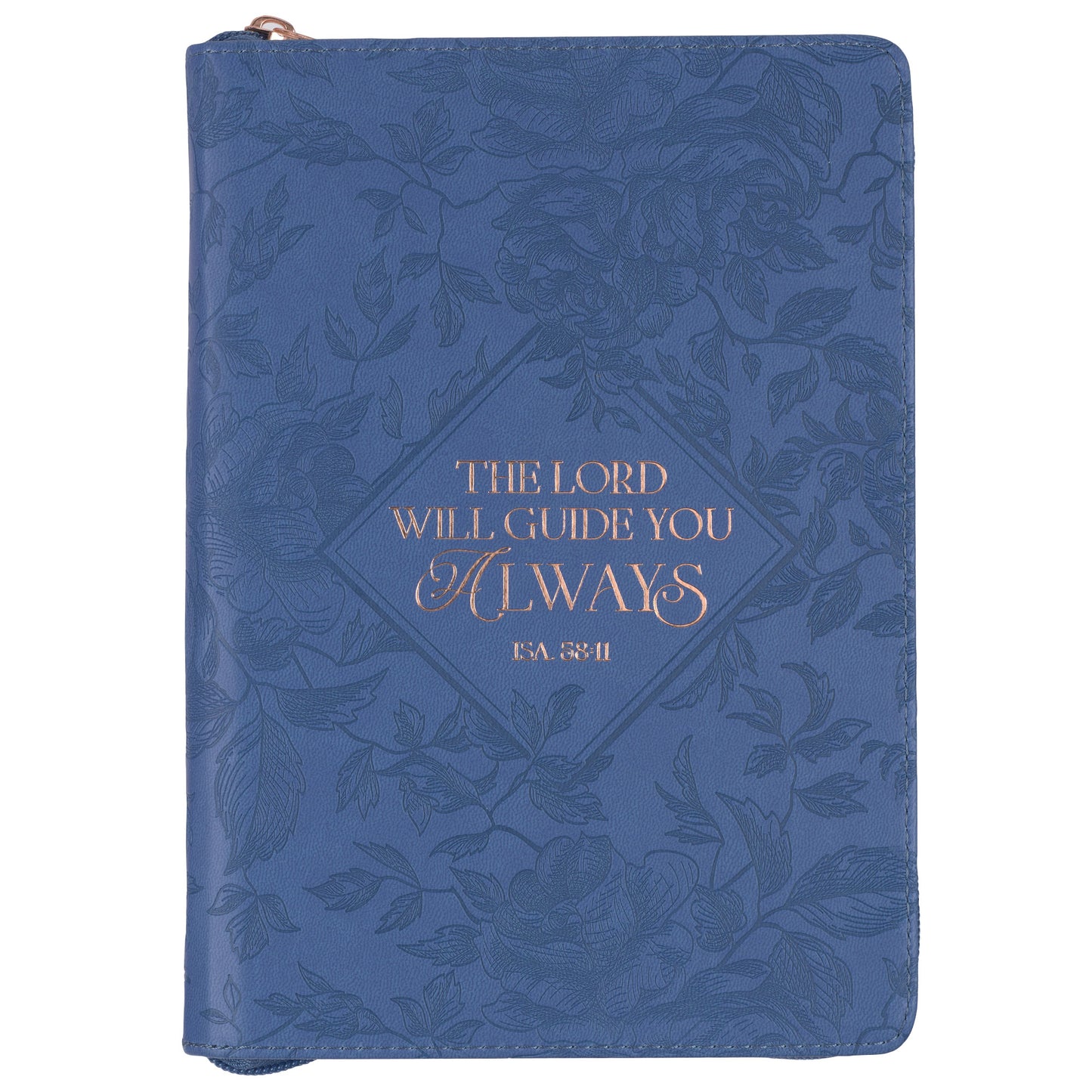 The Lord Will Guide You Blue Faux Leather Classic Journal with Zipper Closure - Isaiah 58:11