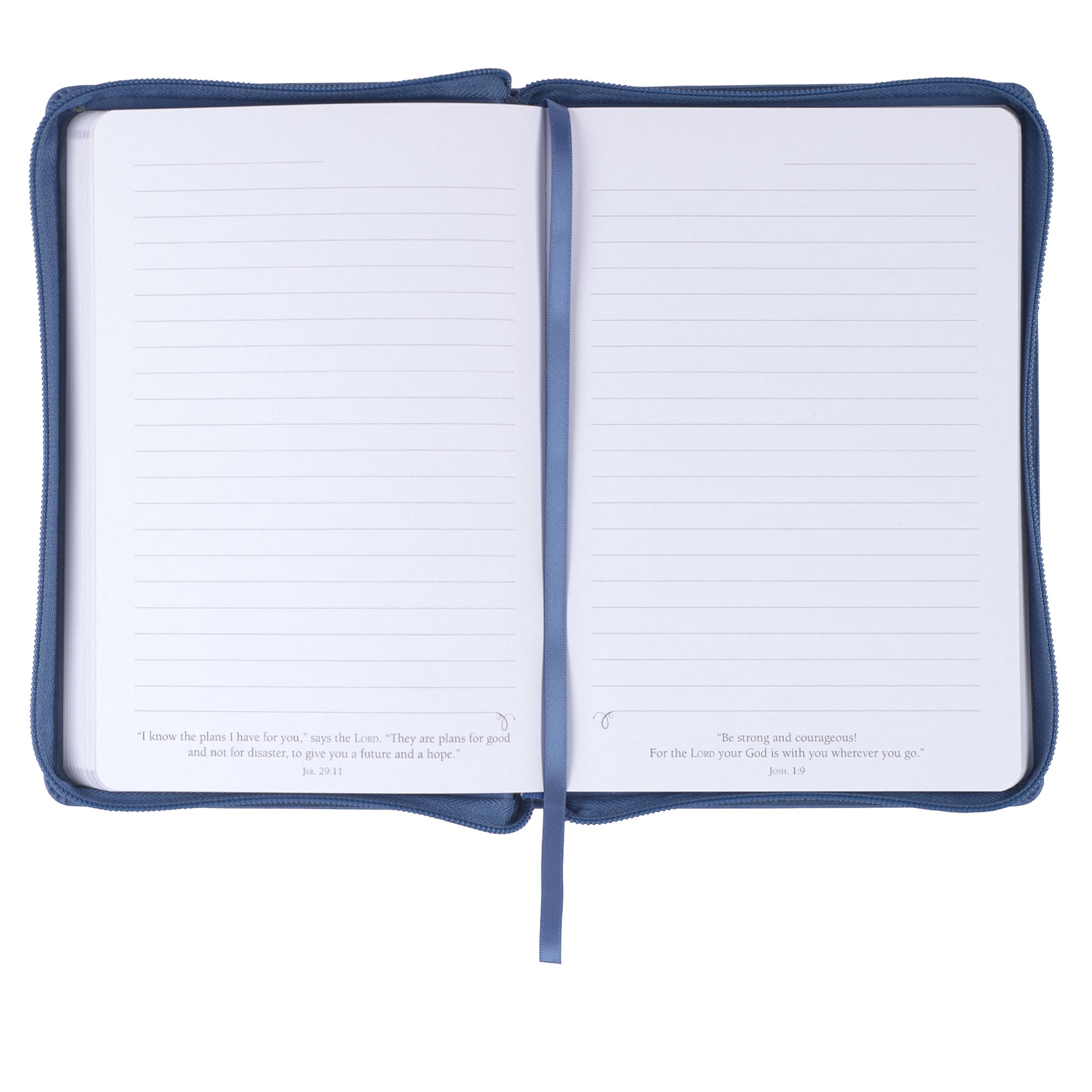 The calming blue color of The Lord Will Guide You Blue Faux Leather Classic Journal with Zipper Closure, paired with its reassuring message, will make noting your plans for the near or distant future on its pages an uplifting task.