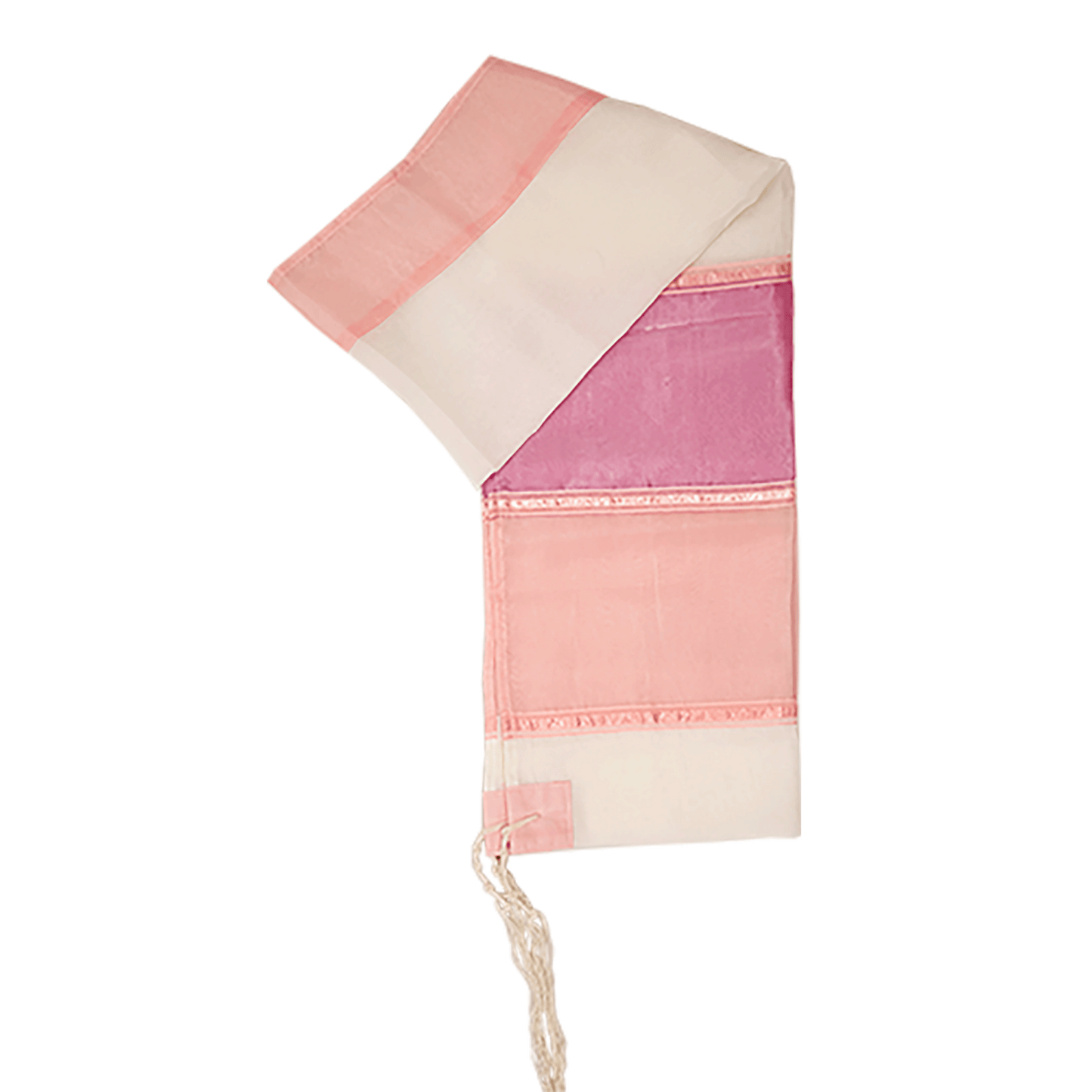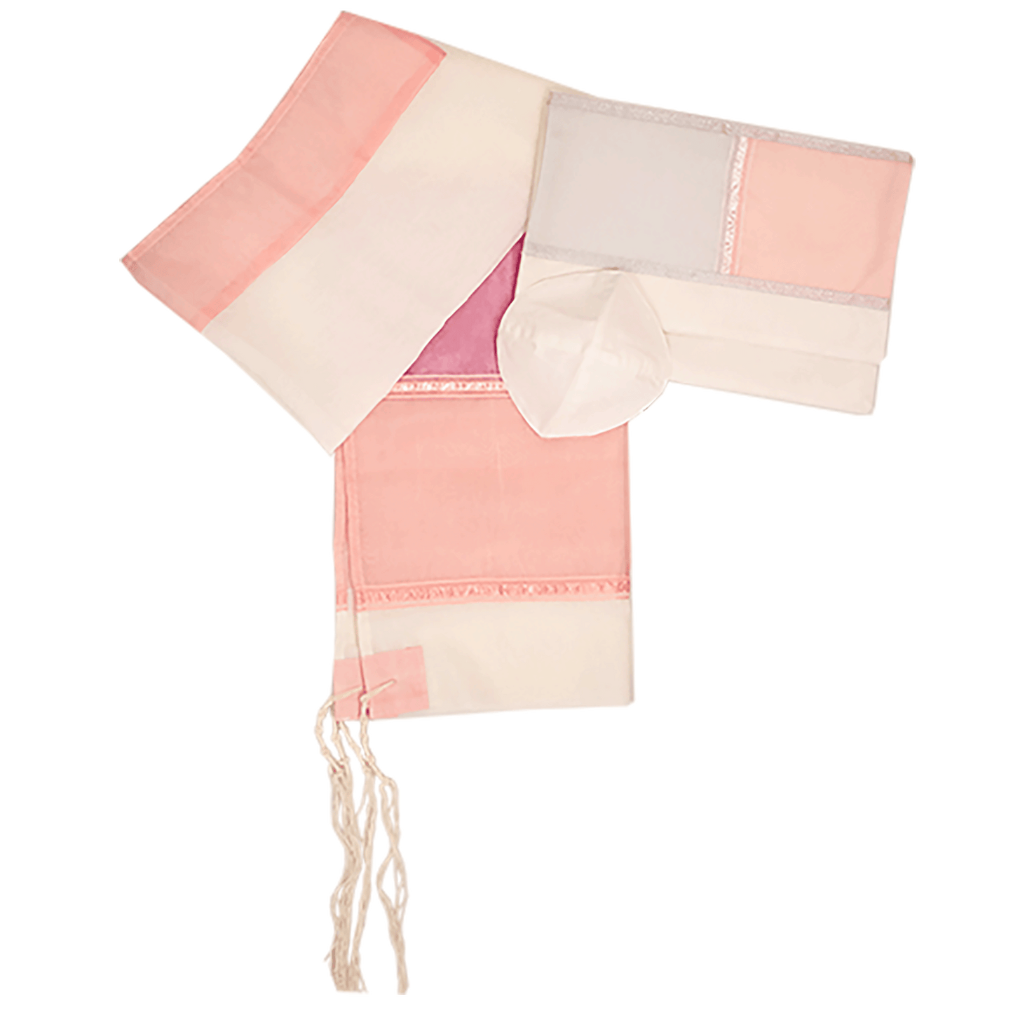 Hand-Woven Silk Prayer Shawl Set by Gabrieli – Cream with Fuchsia & Peach Accents
