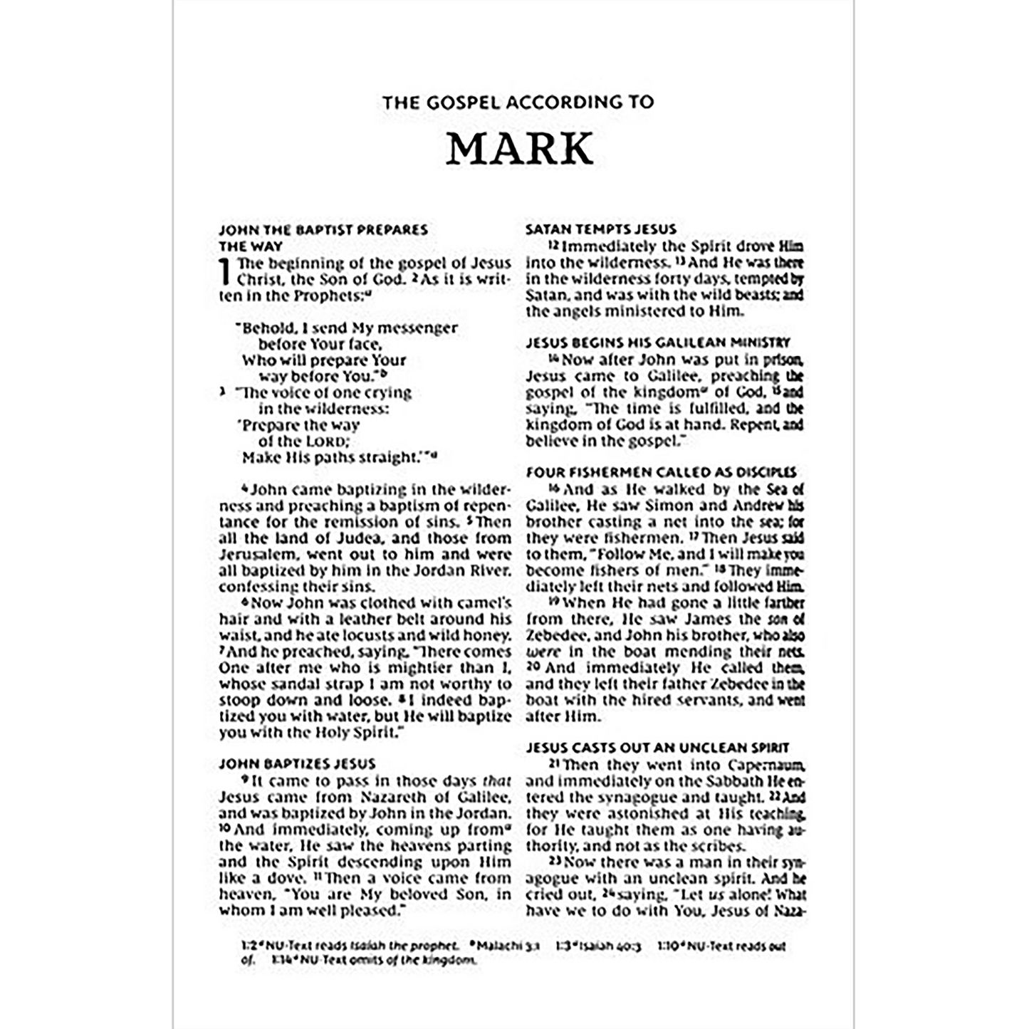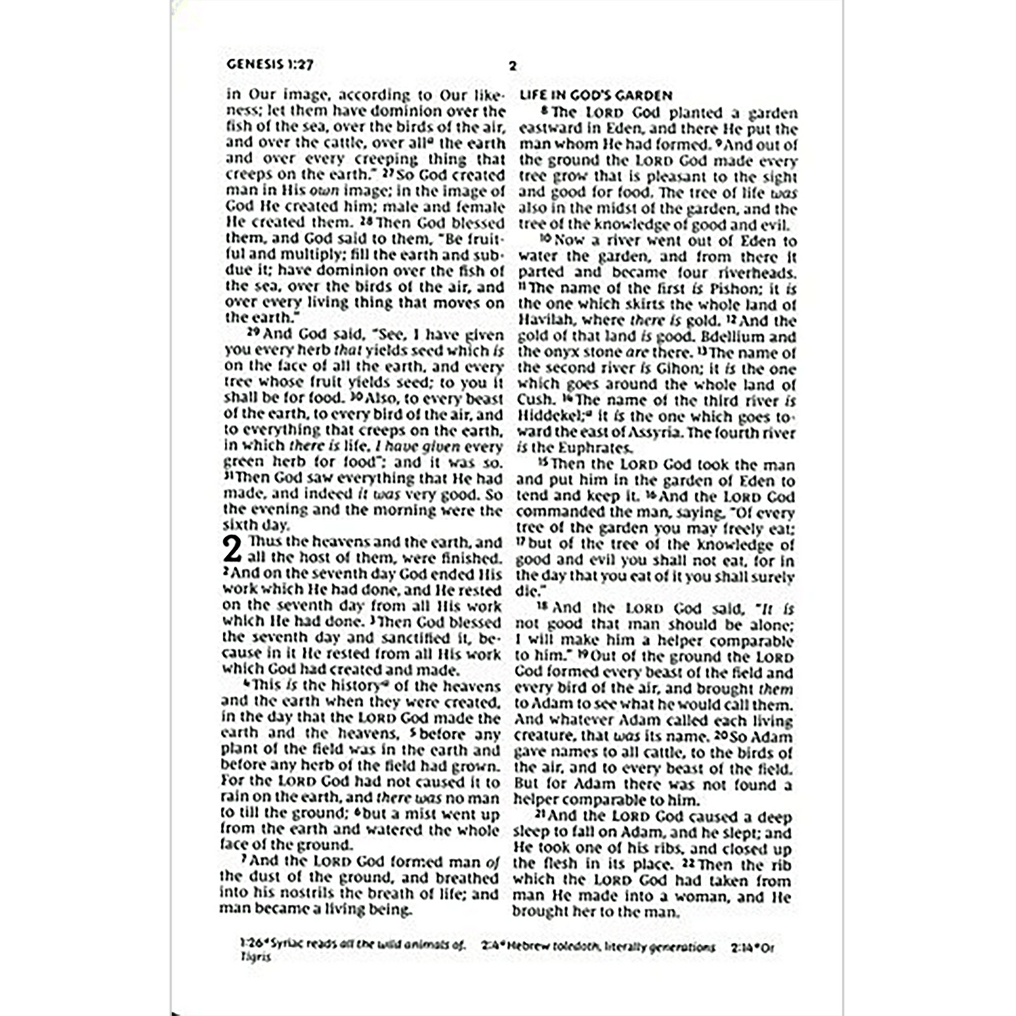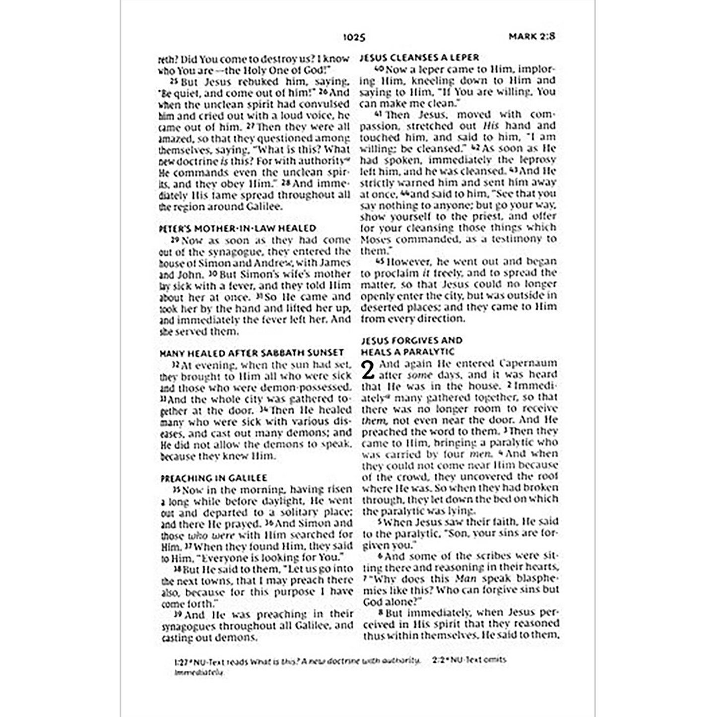 - Clear and readable NKJV Comfort Print typeface displayed in a double-column format