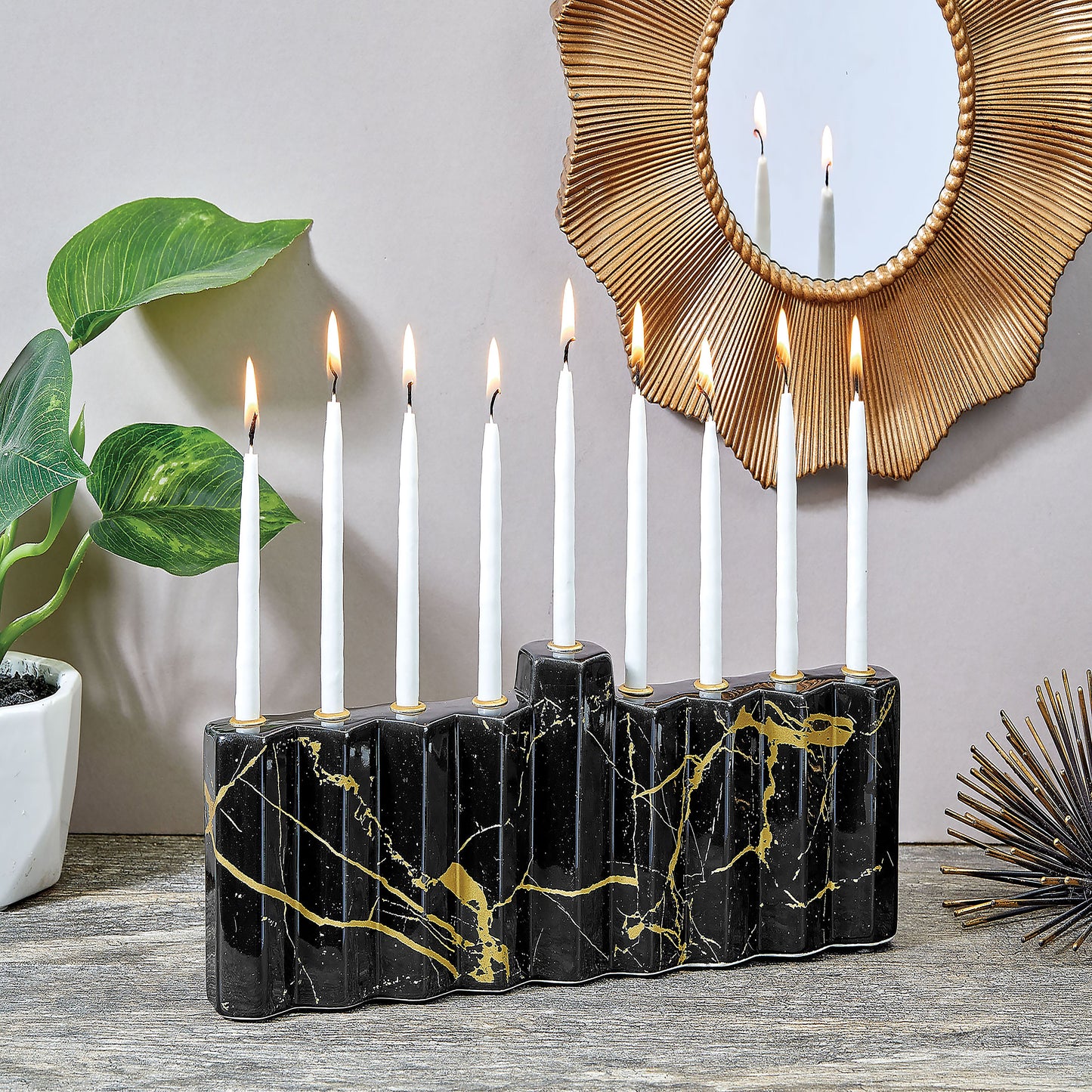 Hand Dipped & Hand Decorated With Marble Coating by Skilled Artisans - Sized to Fit Most Menorahs (9mm) - Burns Clean and Bright for Approximately One Hour - High quality, Lead-Free wicks