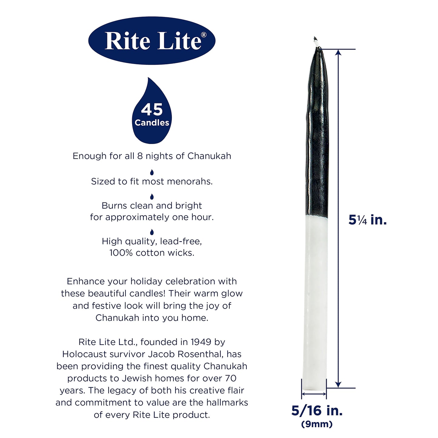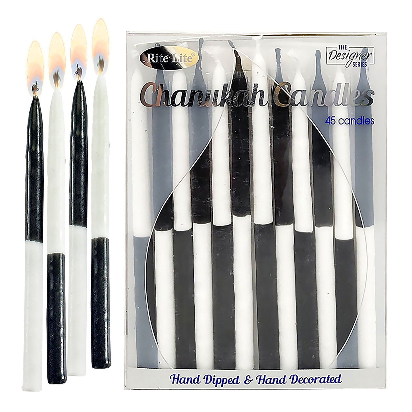 - 45 2-Tone Black/White Candles for all 8 days of Chanukah