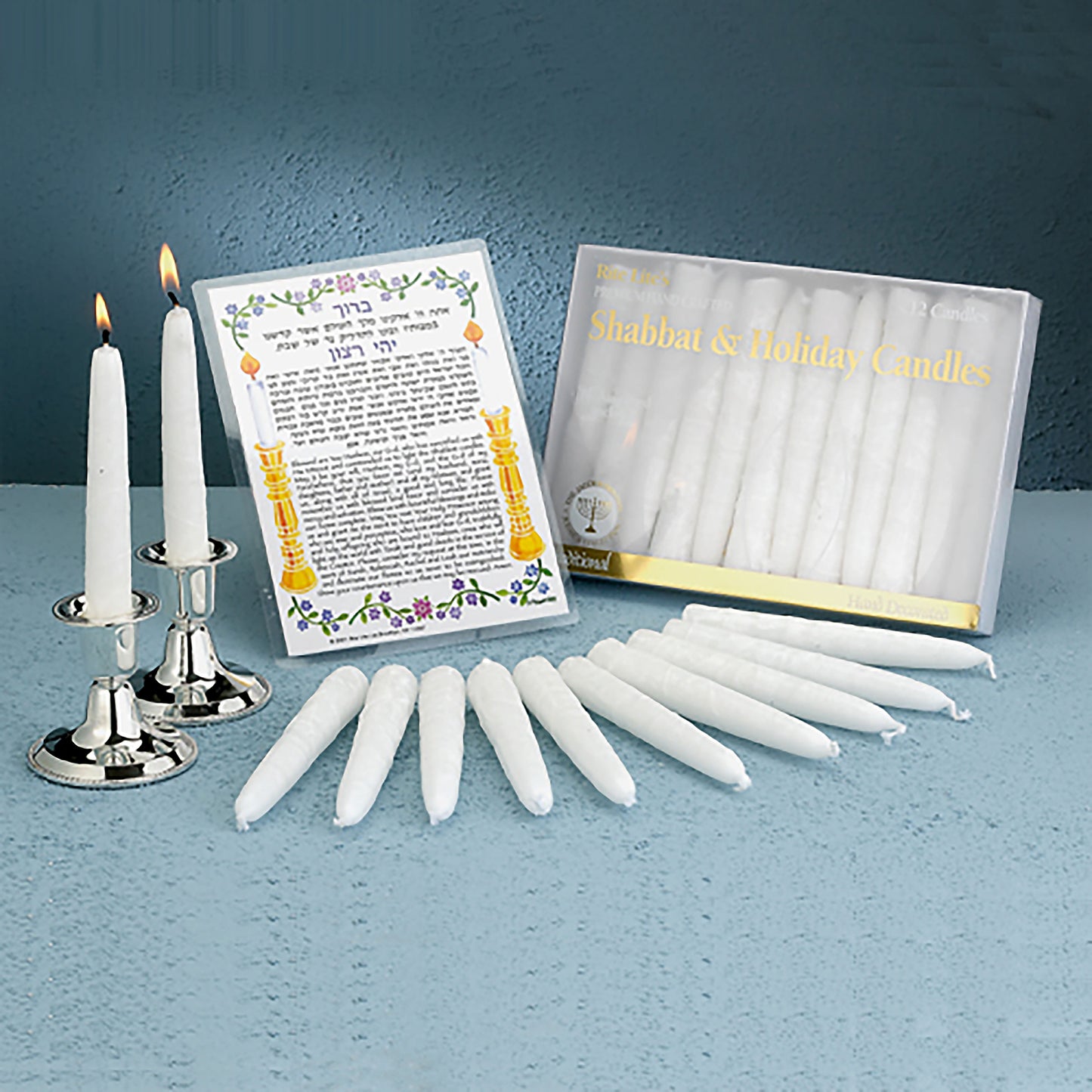 - 12 Hand Dipped Candles - Decorative Shabbat Blessing Card