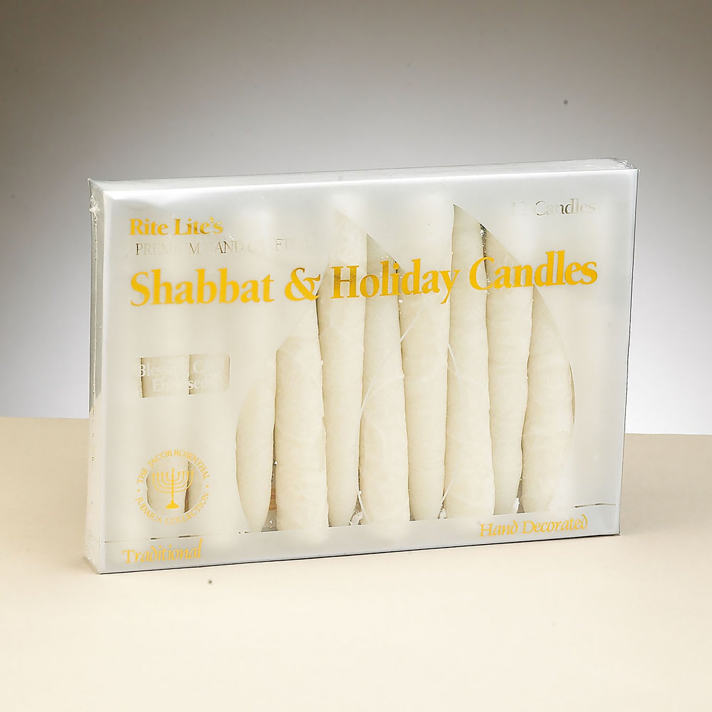 Grace your Shabbat table with these premium Candles! Hand crafted and decorated with a white on white coating, these candles will welcome Shabbat into your home with warmth and grace.