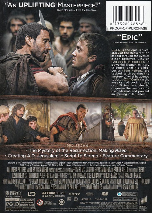 The epic Biblical story of the Resurrection and the weeks that followed, as seen through the eyes of an unbelieving Clavius (Joseph Fiennes), a high-ranking Roman Military Tribune. Clavius and his aide Lucius (Tom Felton) are instructed by Pontius Pilate to ensure Jesus' radical followers don't steal his body and claim resurrection. When the body goes missing within days, Clavius sets out on a mission to locate the missing body in order to disprove the rumors of a risen Messiah and prevent an uprising in Jerusalem. The skeptical soldier finds himself on the road to discovery. Who was this man?
