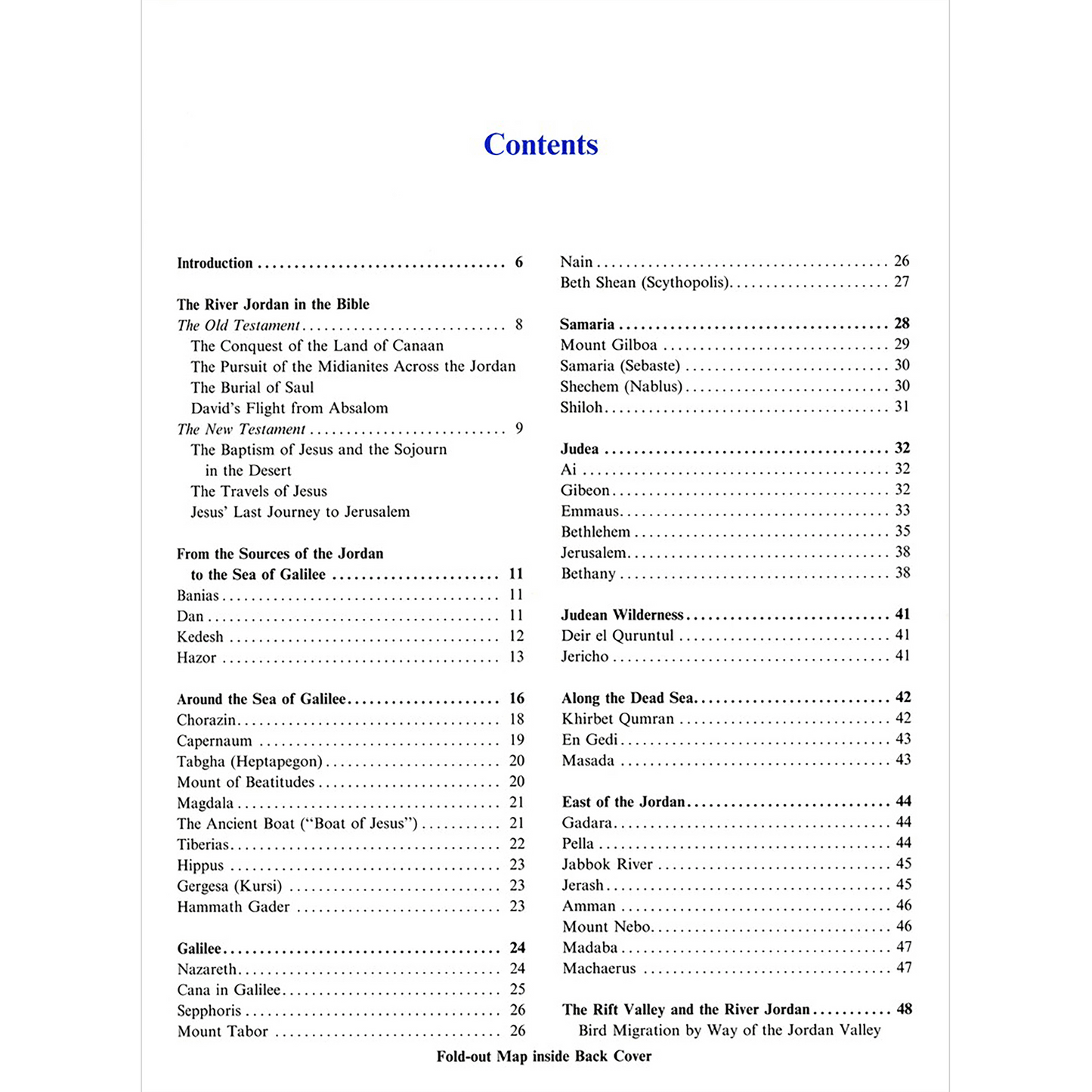 This book is designed for Christian tourists and provides panoramic vistas, the River Jordan in the Bible through maps, a satellite photograph of the Rift Valley, and a special fold-out map.
