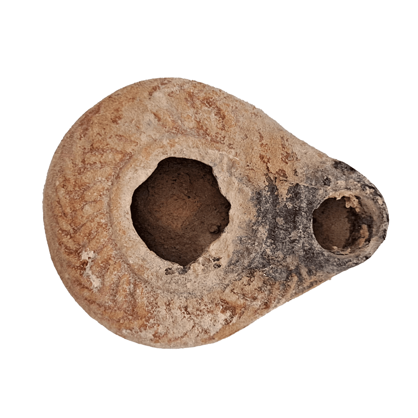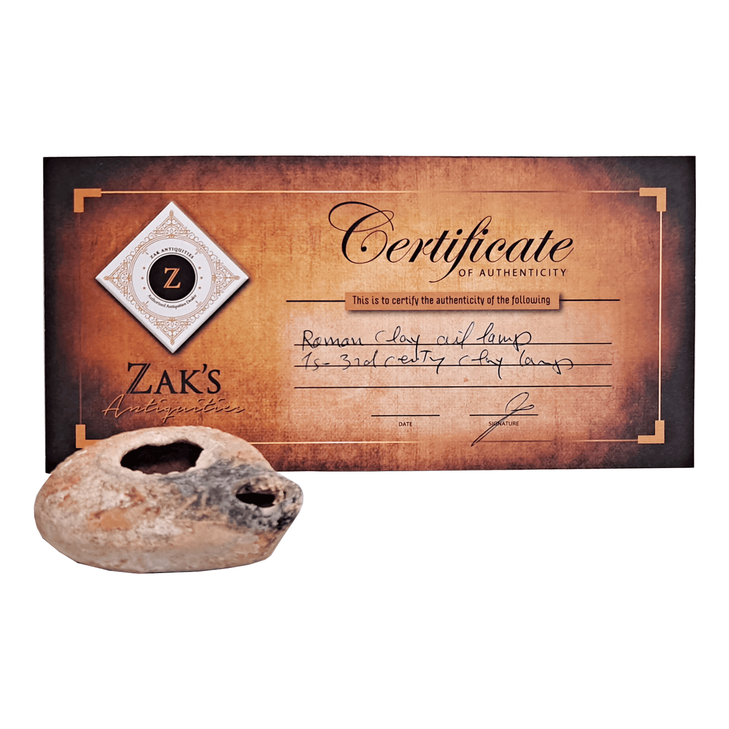This Roman oil lamp, dating back to the Byzantine era, is a genuine antiquity that offers a fascinating glimpse into the past. Expertly crafted and well-preserved, this lamp reflects the daily life and artistry of ancient civilizations. The lamp comes with a Certificate of Authenticity, verifying its historical significance and ensuring its provenance. This remarkable artifact serves as both a beautiful display piece and a tangible connection to the rich cultural heritage of the Roman and Byzantine periods, making it a prized addition to any collection.