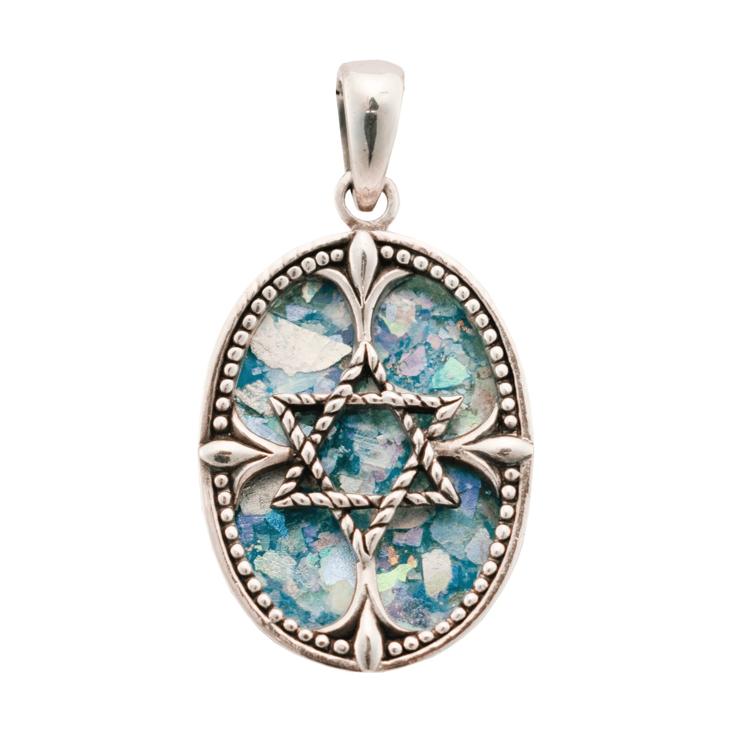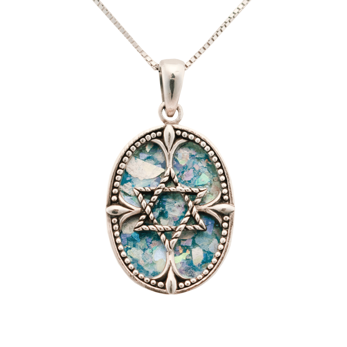 Roman Glass is a beautiful blend of colors and history, dating to over 2,000 years ago. Found mainly in Israel and unearthed during archeological digs, each shard of glass discovered contains brilliant hues of blue, green, and pink. Each remnant possesses a distinctive character and brilliance that makes each piece uniquely its own.