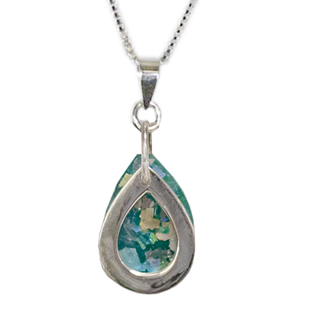 Roman Glass & Silver Teardrop Necklace