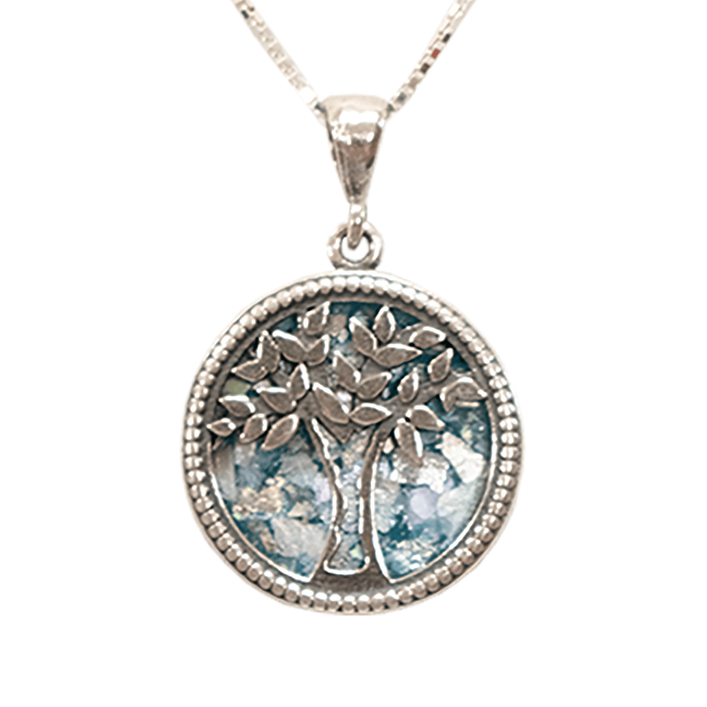 Roman Glass & Sterling Silver Tree of Life Necklace
