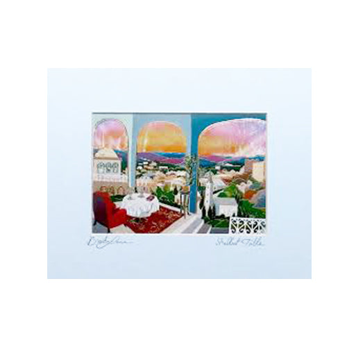Bracha Lavee´s works are inspired by the Holy City of Jerusalem, stories from the Bible, and her deep roots in ancient and modern knowledge of the Holy Land. The vivid, semi-tropical colors found in her works result in strikingly dramatic works of art that also exude the warmth and energy of the Holy Land.