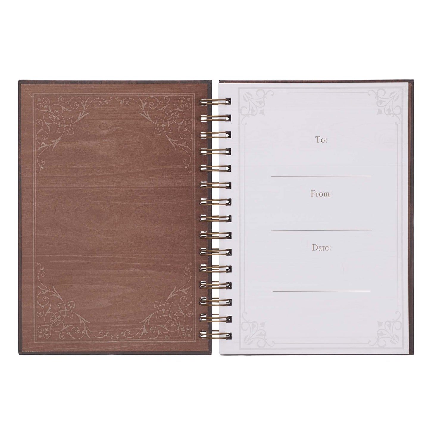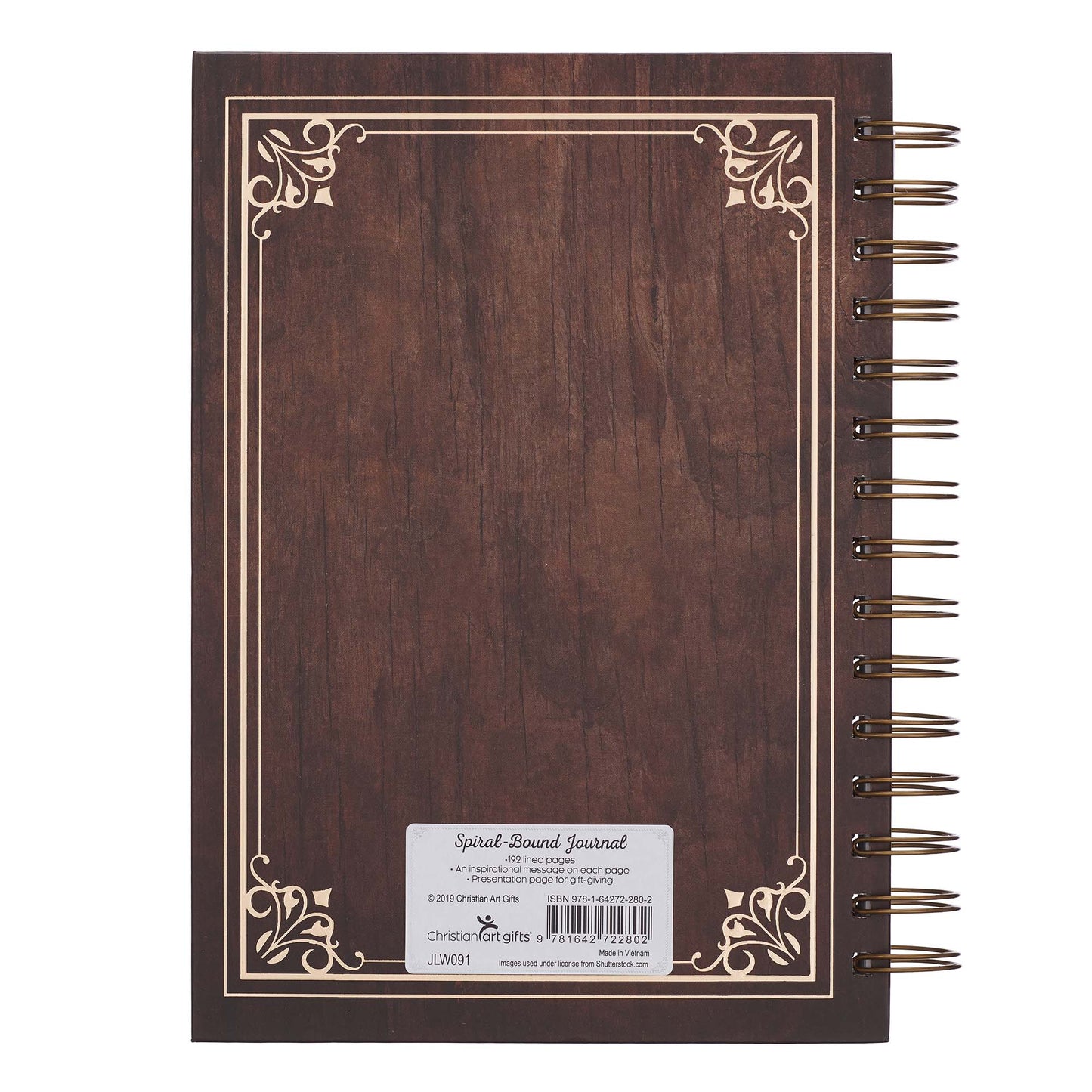 The spiral-bound journal features wire binding, a hardcover, and 192 lined pages. Each page includes Scripture for meditation or prayer.