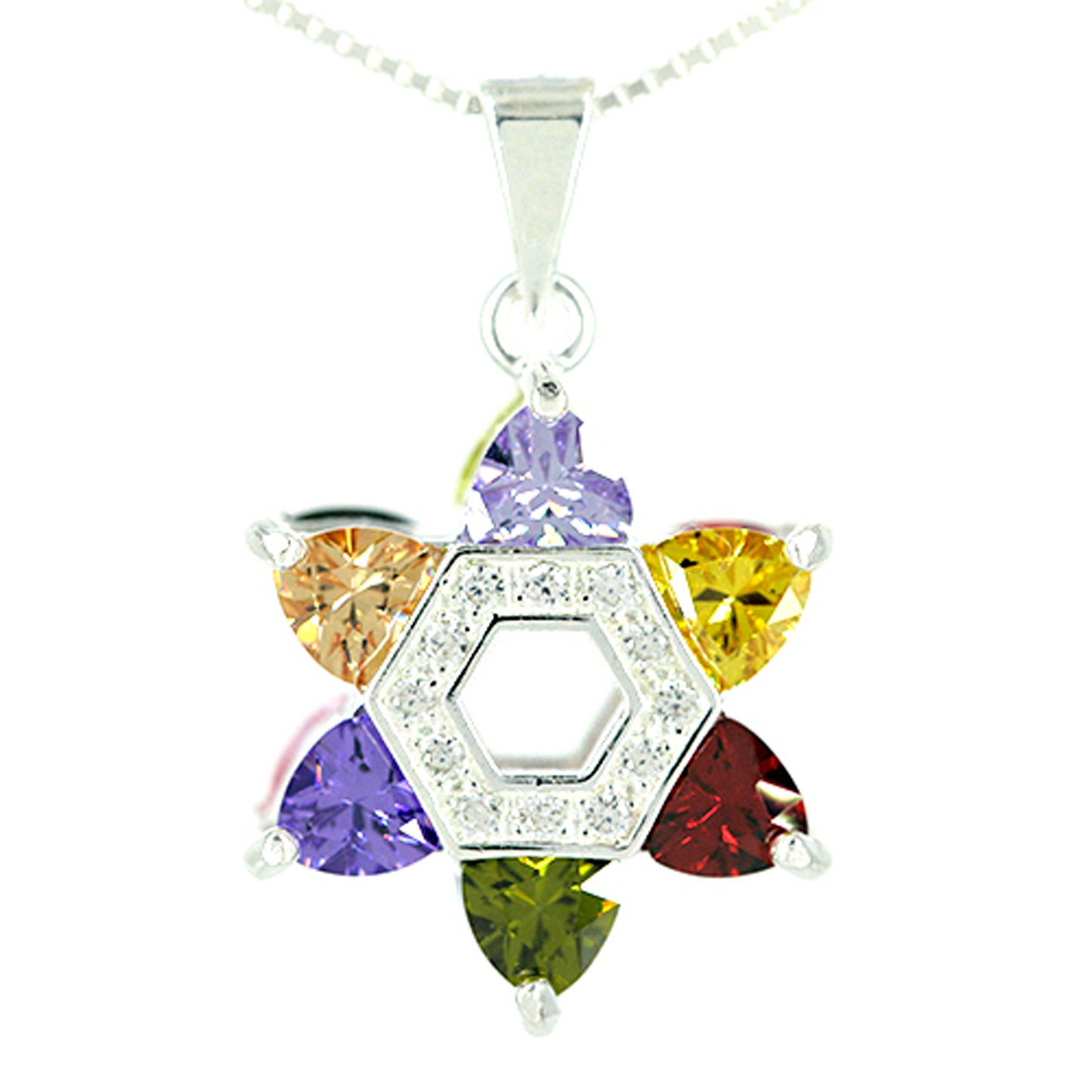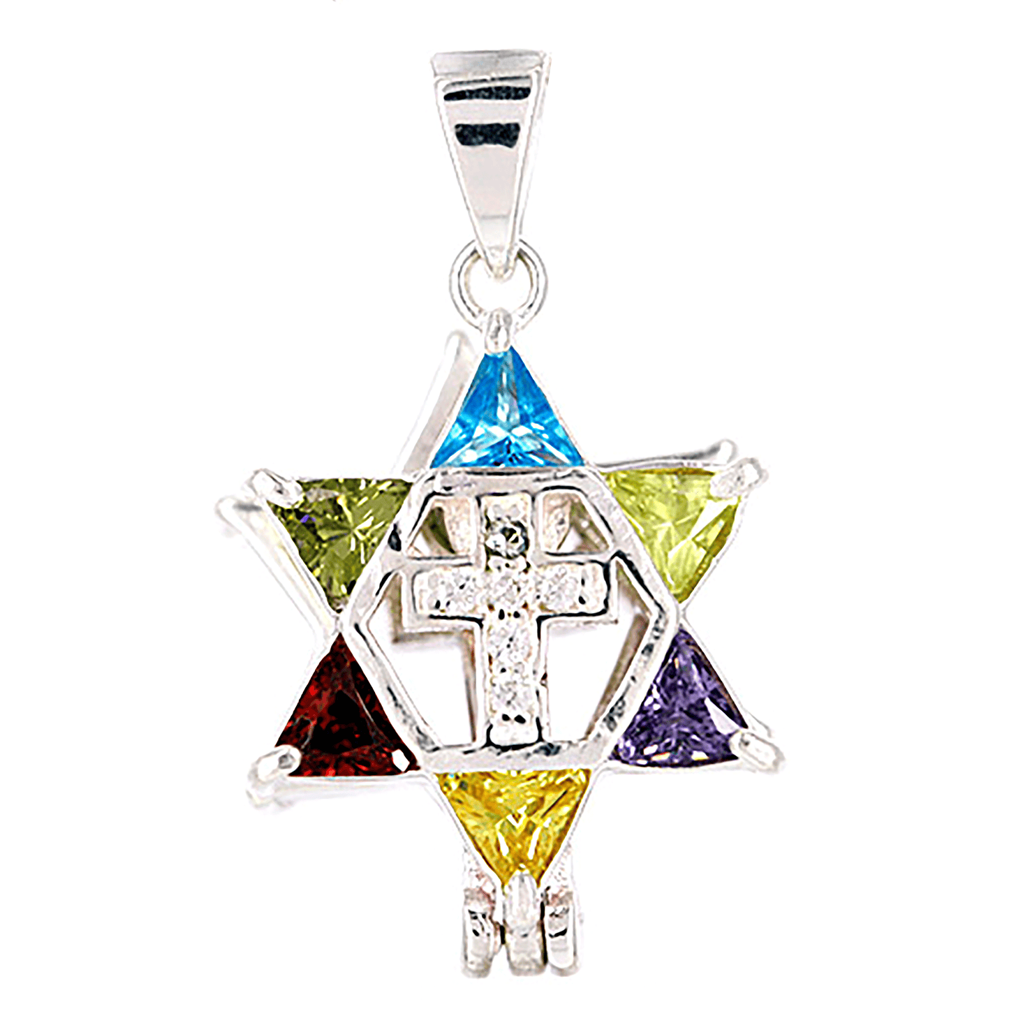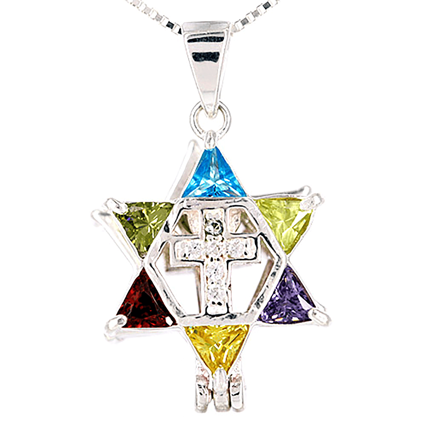 Beautiful double sided Star of David necklace. This sterling silver double-sided Star of David necklace has twelve different colored stones to represent each of the twelve tribes.