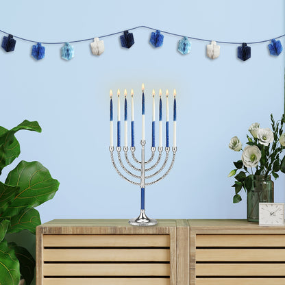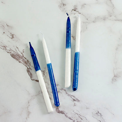 - Colorblock Blue & White Candles, Hand Crafted by Skilled Artisans - Sized to Fit Most hanukkiahs (9mm) - Burns Clean and Bright for Approximately One Hour - High quality, Lead-Free wicks