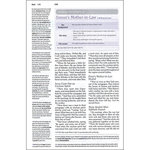 The Study Bible for Women equips you to reach deep into God’s Word. Perhaps the single most powerful aspect of this Bible are the "threads" of specialized study thoughtfully woven throughout, pointing you to God’s larger story and allowing the Holy Spirit to write His revealed truths on your heart.