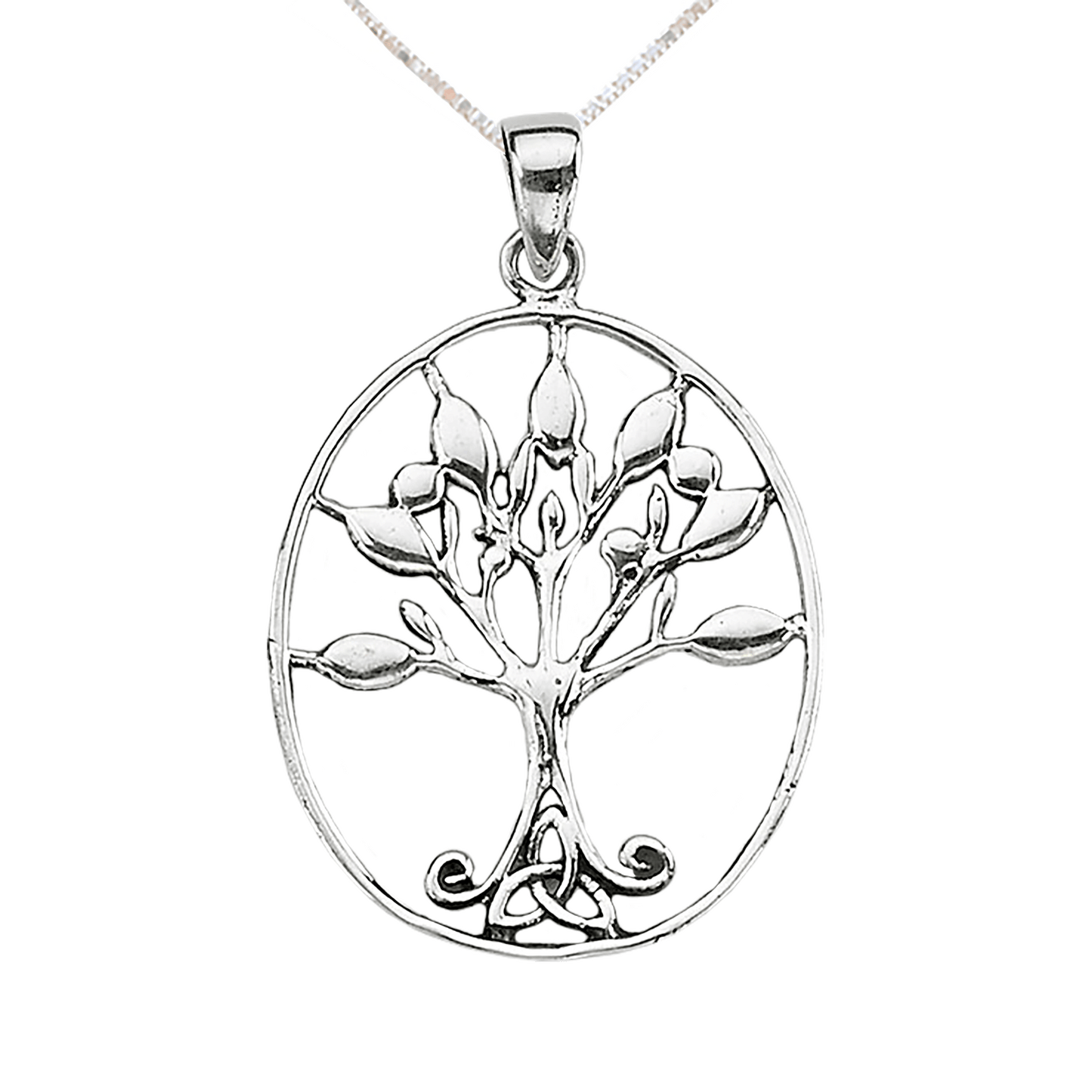 This sterling silver Tree of Life oval pendant is a stunning representation of faith. Crafted with meticulous attention to detail from high-quality sterling silver, this pendant features a captivating design of a tree with branches reaching towards the heavens and roots firmly grounded in the Word.